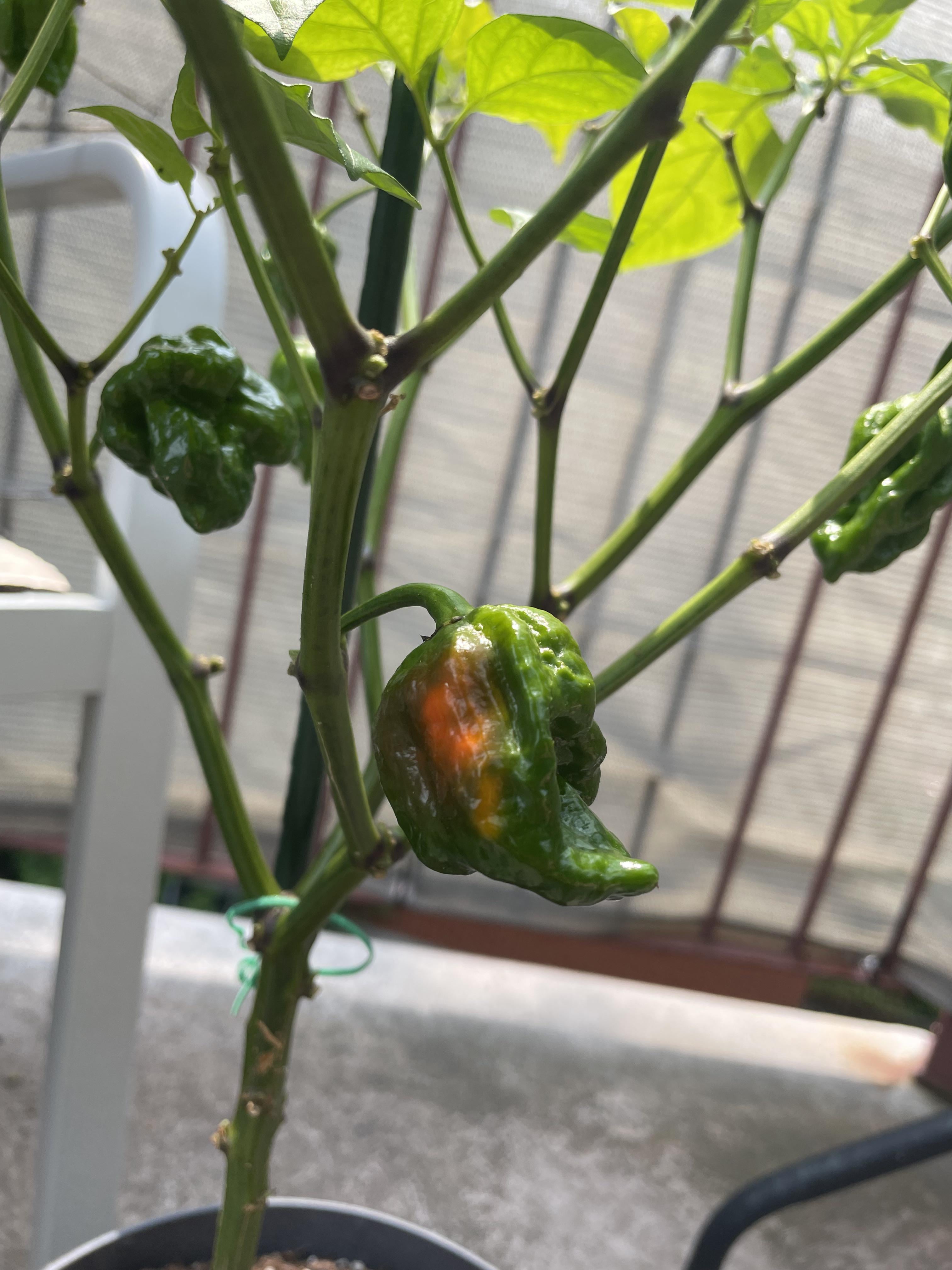I wasn't sure how my Scorpions Trinidad would turn out because it's been getting much colder lately but with some inside/outside management to protect it from heavy rain and cold, the bigger and earlier ones are finally starting to ripen ! Once I have harvested the first few it will be smoker time with a few jalapeños for a sauce idea me and girlfriend prepared.