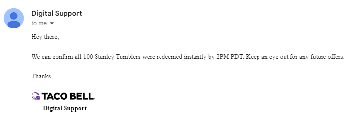 all they had to say after i emailed them about the broken linkby yt_Blink taco bellWrite A CommentYou must be logged in to post a comment.