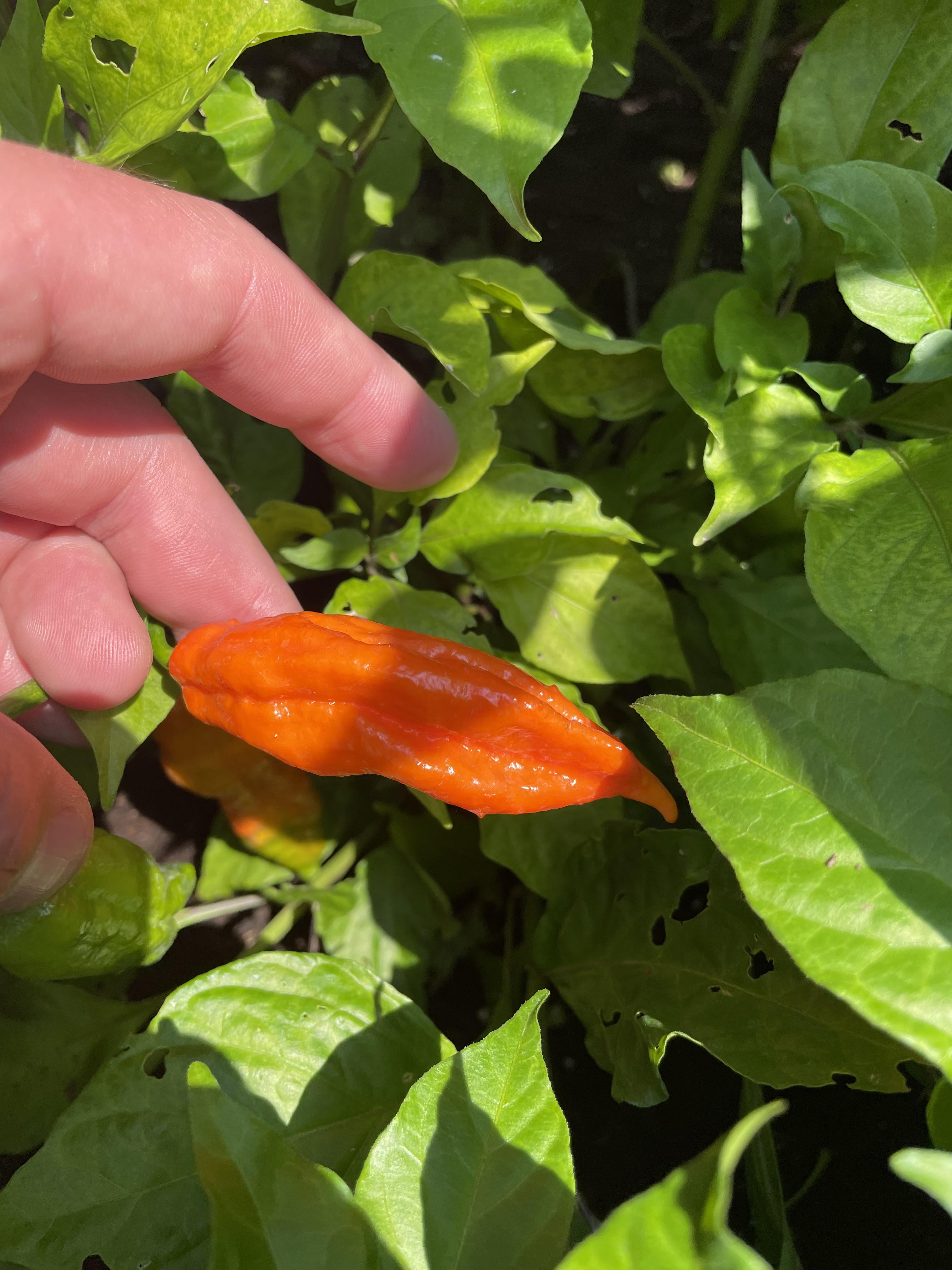 I know a lot of people ask for pepper ID, and I hate to be that guy. I started from seeds in January in my grow tents. Habanero-red and orange, jalapeño, ghost, and choc reapers. This plant hasn’t produced anything until the last week, all while I have hundreds of all the peppers. Ideas? I’m just assuming a mutation