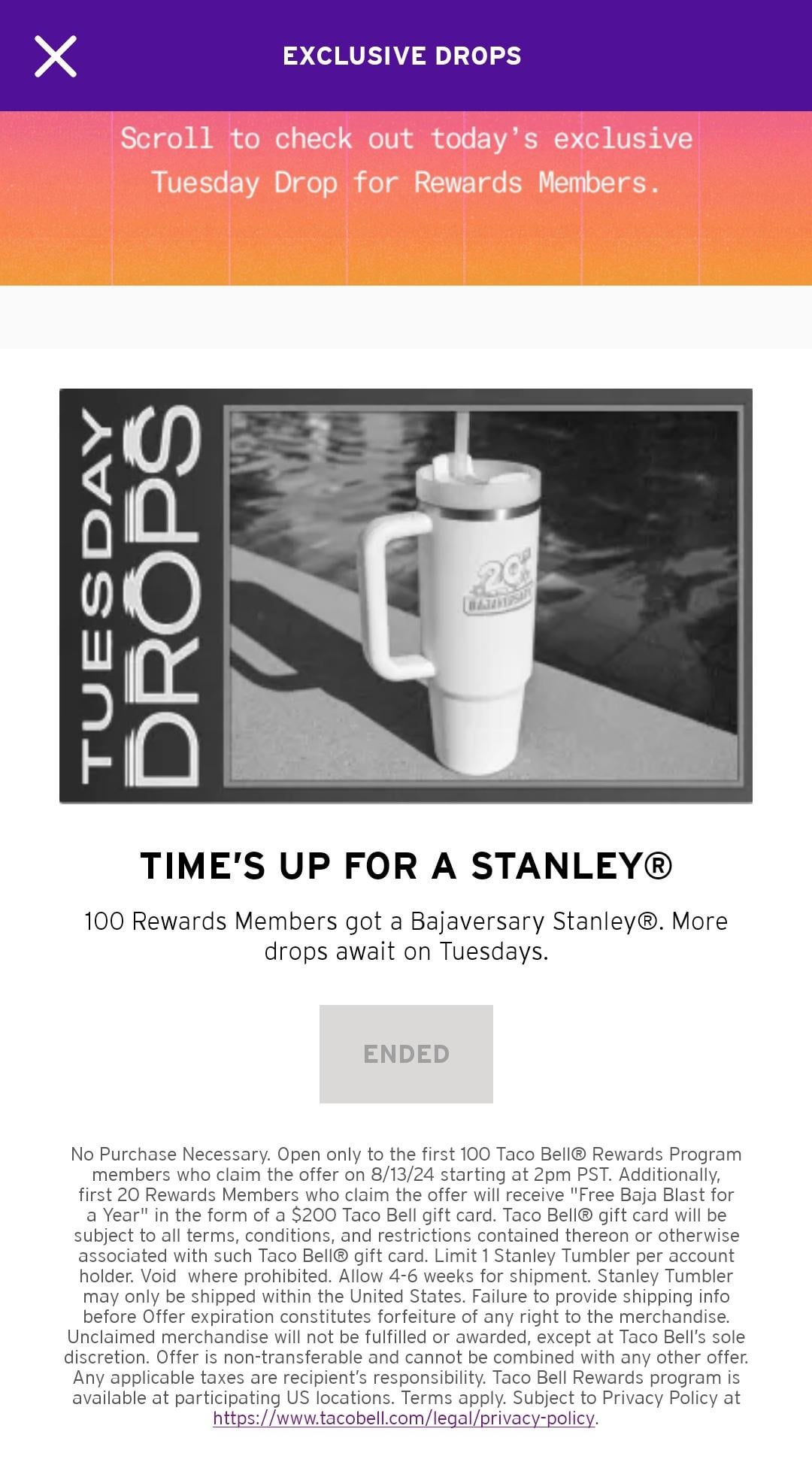 Not gonna lie, I feel like this was all a joke. Page kept showing an error and I was on it when it turned purple. Thanks Taco Bell by Sweet_Construction29 taco bell 1 Comment LegnthyBoii 1 year ago maybe our time was the friends we made along the wayWrite A CommentYou must be logged in to post a comment.