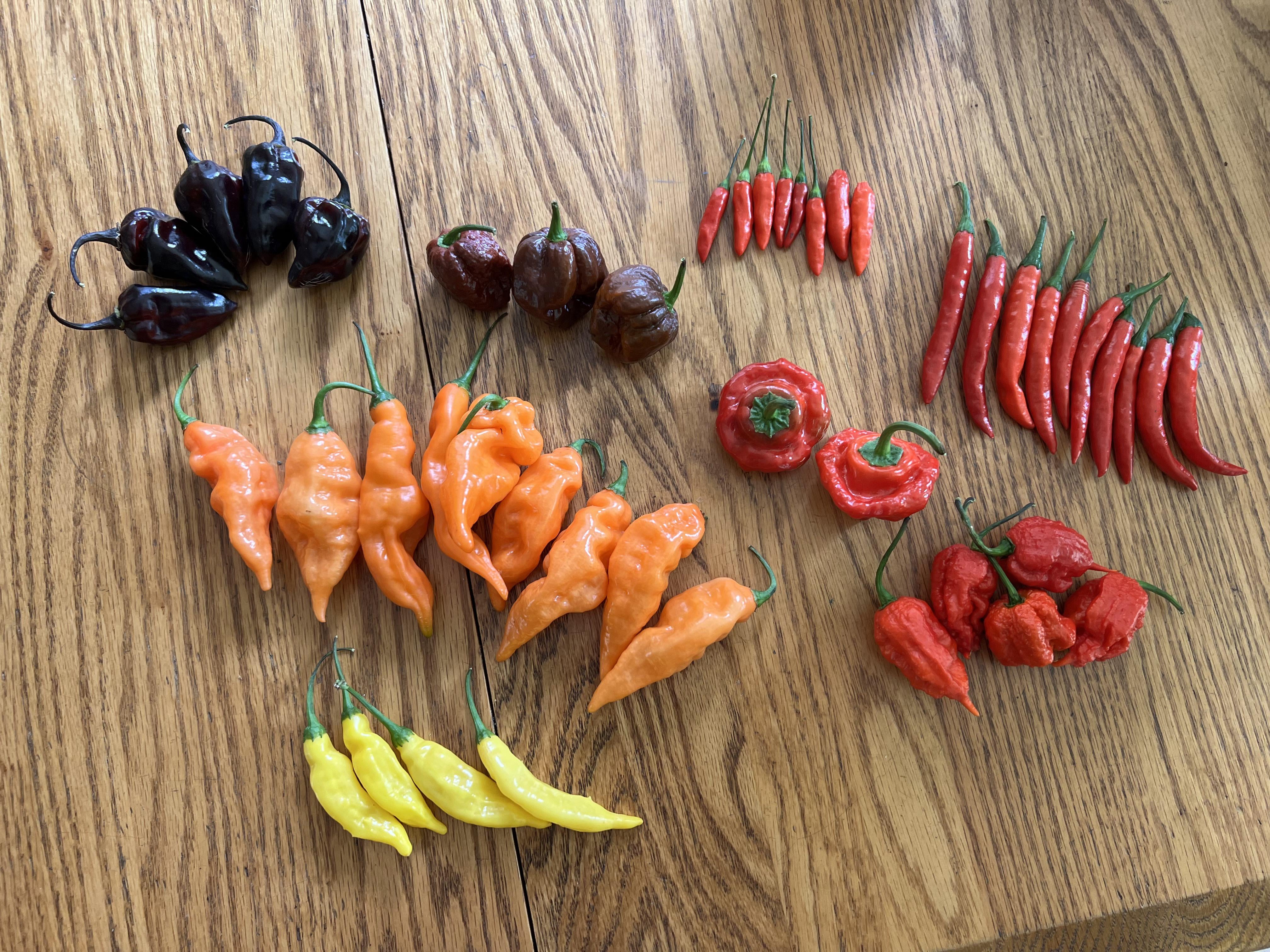 Top left to right down: Purple Bubblegums Trinidad Moruga Scorpions Tabascos Korean Chilis Habañadas (0 SHU Habañeros) Scotch Bonnets Carolina Reapers Lemon Dropsby Only1Schematic PepperPepper LoversWrite A CommentYou must be logged in to post a comment.