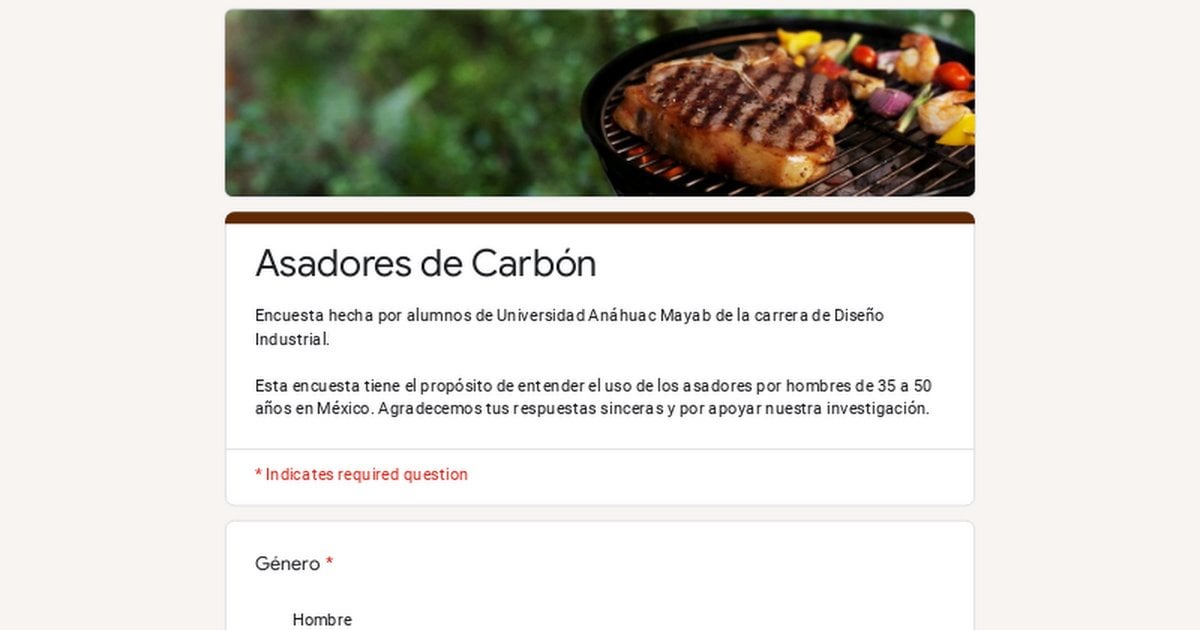 ¡Hola! Soy Emmy, estudiante de Diseño Industrial en la Universidad Anáhuac Mayab, y junto con mi equipo estamos diseñando un asador que se ajuste a tus necesidades. Nos ayudaría muchísimo su ayuda contestando, dura menos de 5 minutos y nos apoyarían mucho con la calificación de nuestra clase. Mil gracias 🙂