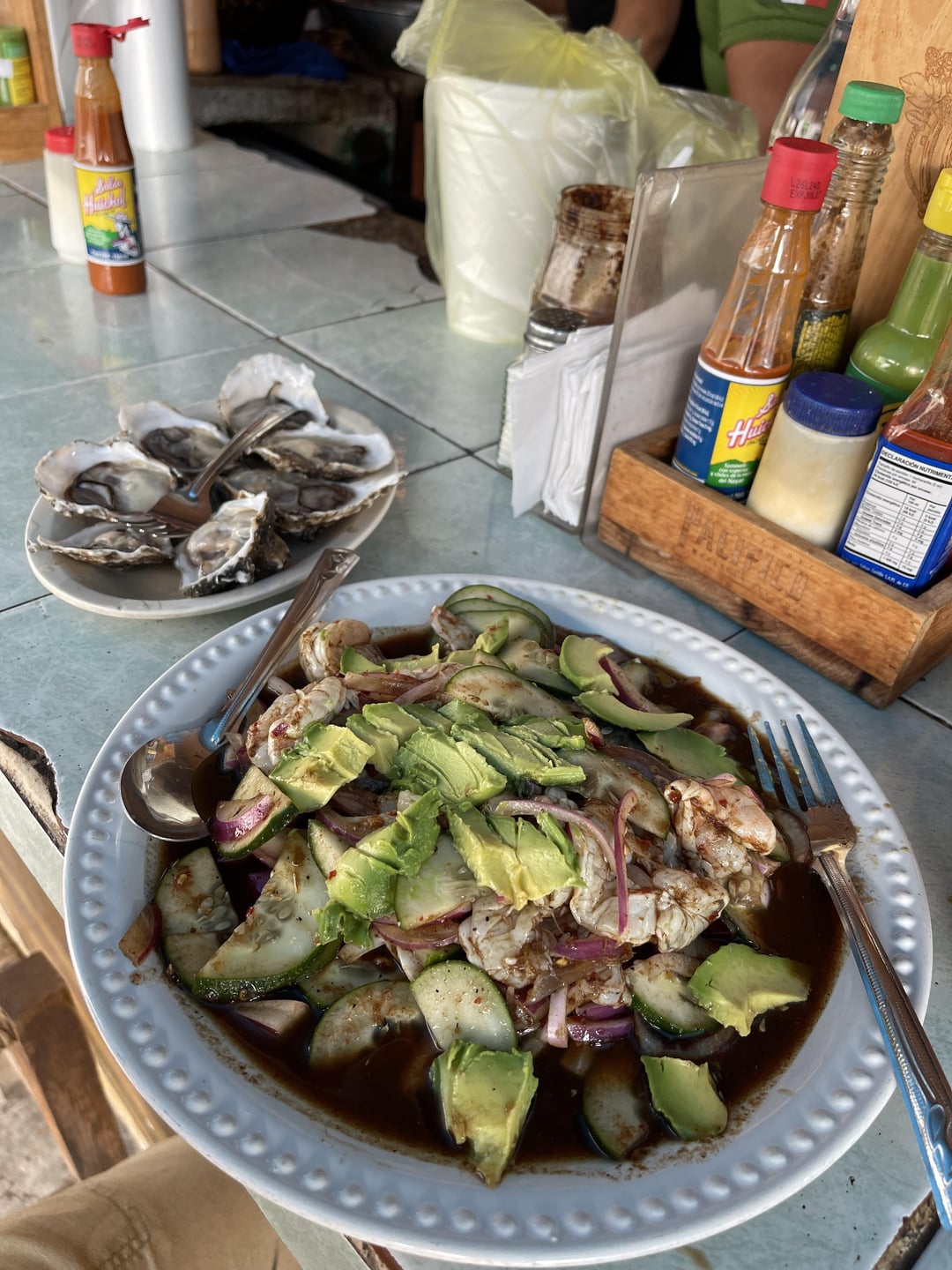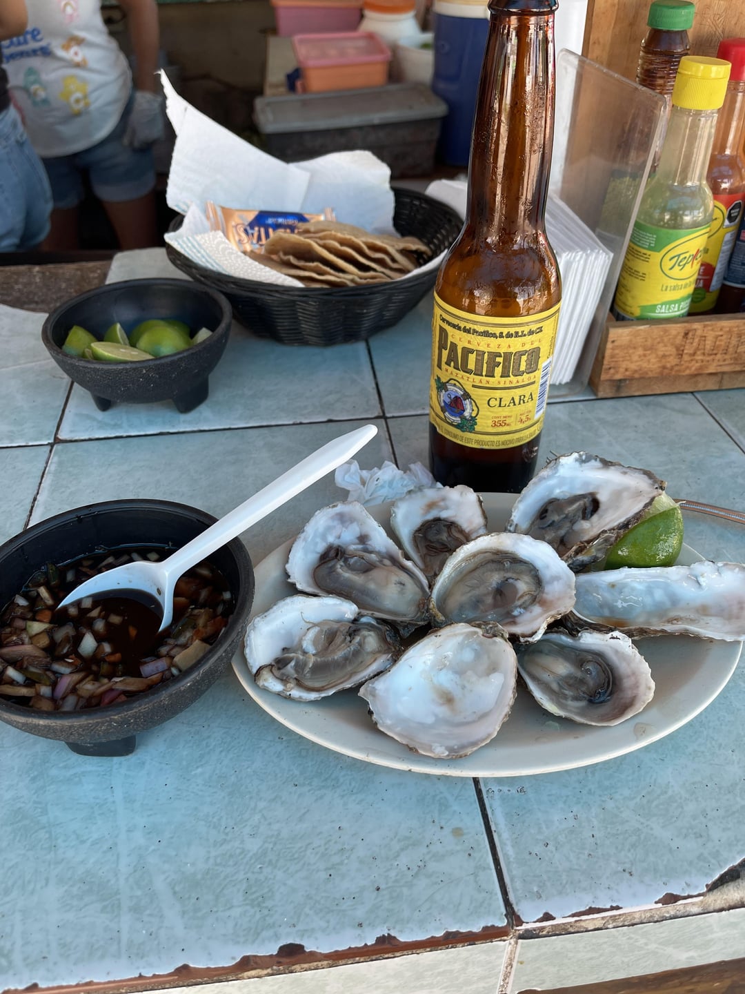 So no one else has to cringe🤣🙄 there was plenty of oyster liquor in them. Y’all have to come to terms with the reality that not everyone on earth eats things or prepares things the way you do, or the way you think it should be done. The black sauce is salsa inglesa based and very spicy! For a few of the shells I slurped down the liquor first and then spooned in the salsa! This was a very good combo! For others I just squeezed a lime over them with a sprinkle of salt and slurped them down. I also had a couple with just salsa Huichol and the liquor. That one guy acted like someone ran over his dog because there was sauce in some of the shells… variety is the spice of life my friends! Try new things, and don’t spray tears when ppl do things differently. 🤣🍻🇲🇽