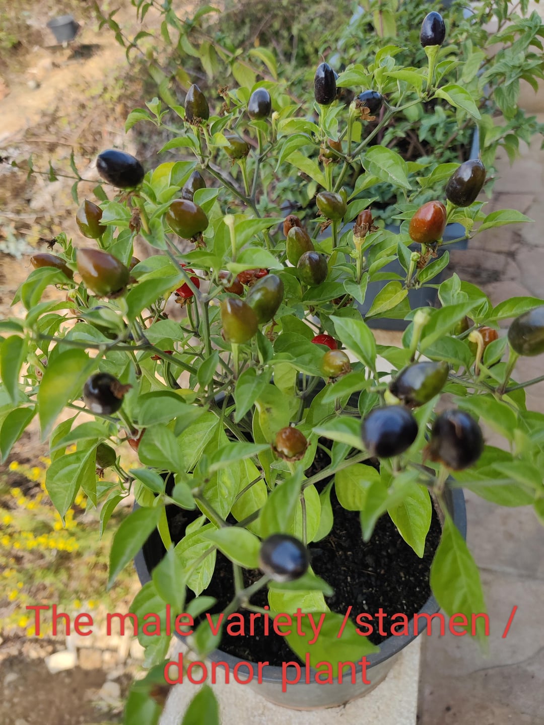 The male plant is a rainbow variety but not sure which one, could be a Numex twilight or a Bolivian rainbow or maybe something else.