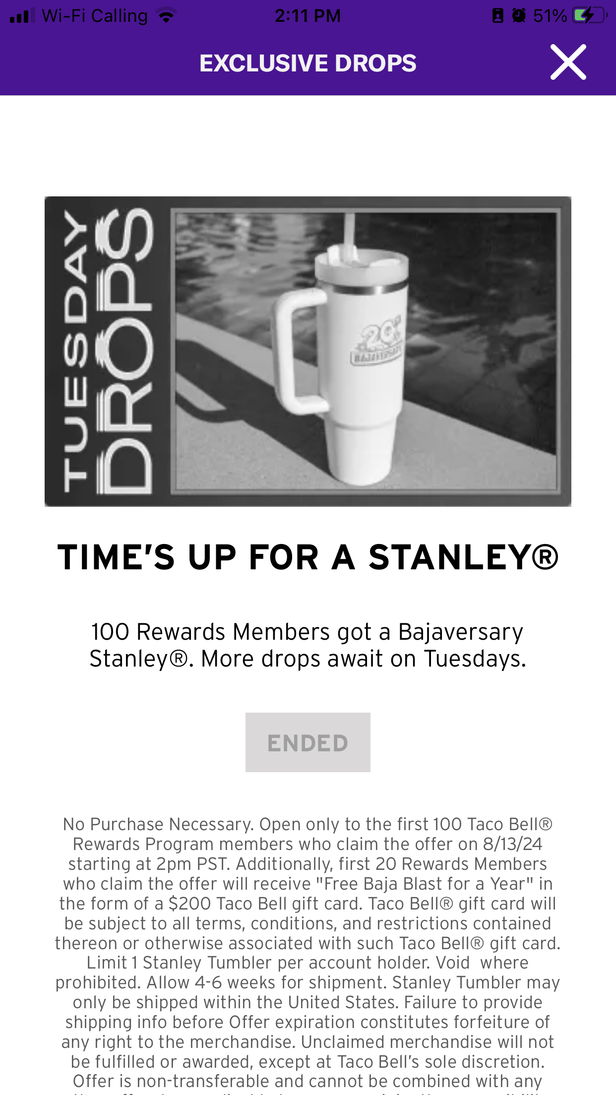 constant refreshing and app rebooting starting at 2pm pst on the dot. did anyone actually get one? by nkmds taco bellWrite A CommentYou must be logged in to post a comment.