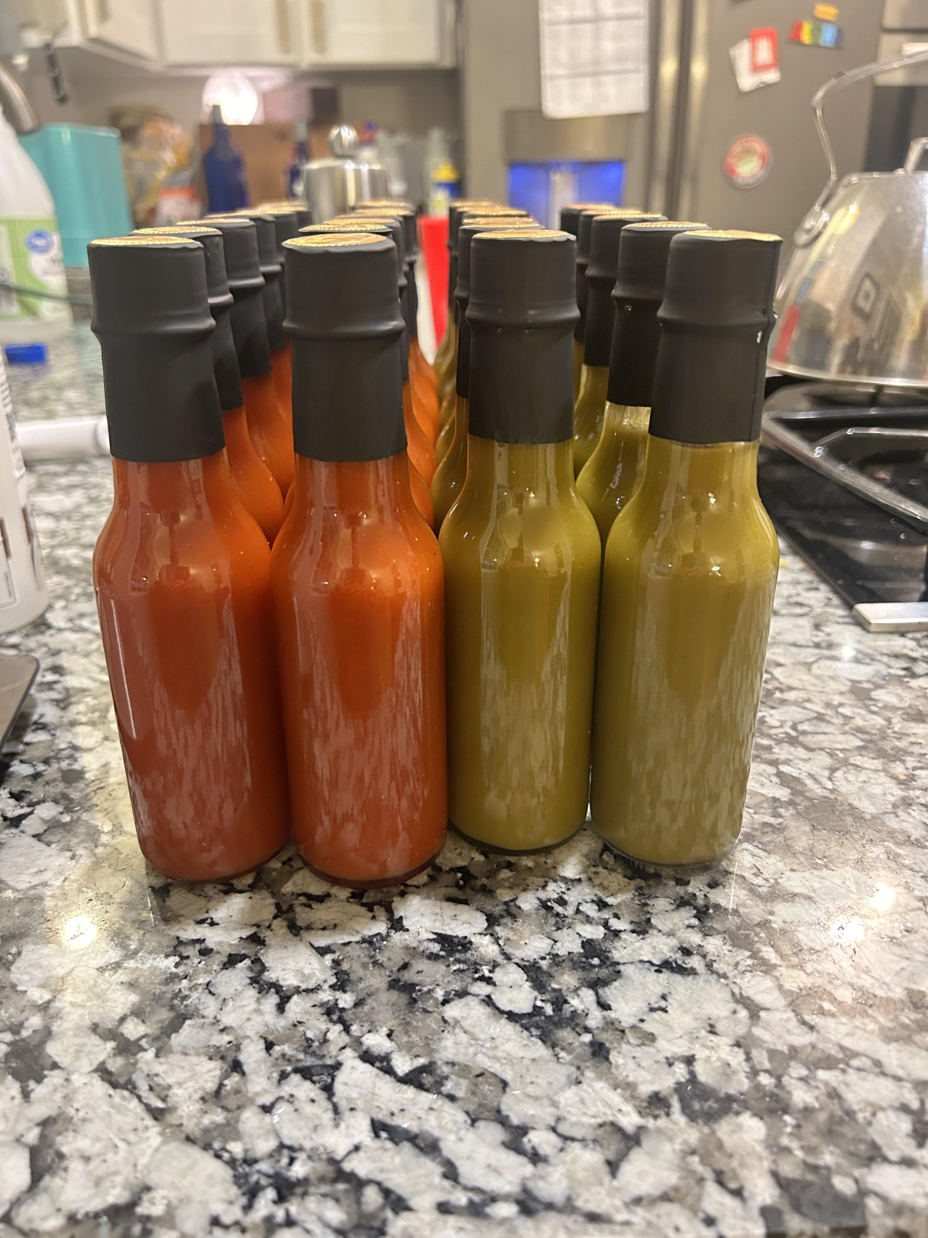 Left is a dragon claw cayenne, right is a jalapeno/poblano blend. Both taste amazing. Also have reaper and ghost mashes I need to figure out how to process without running my family out of the house.