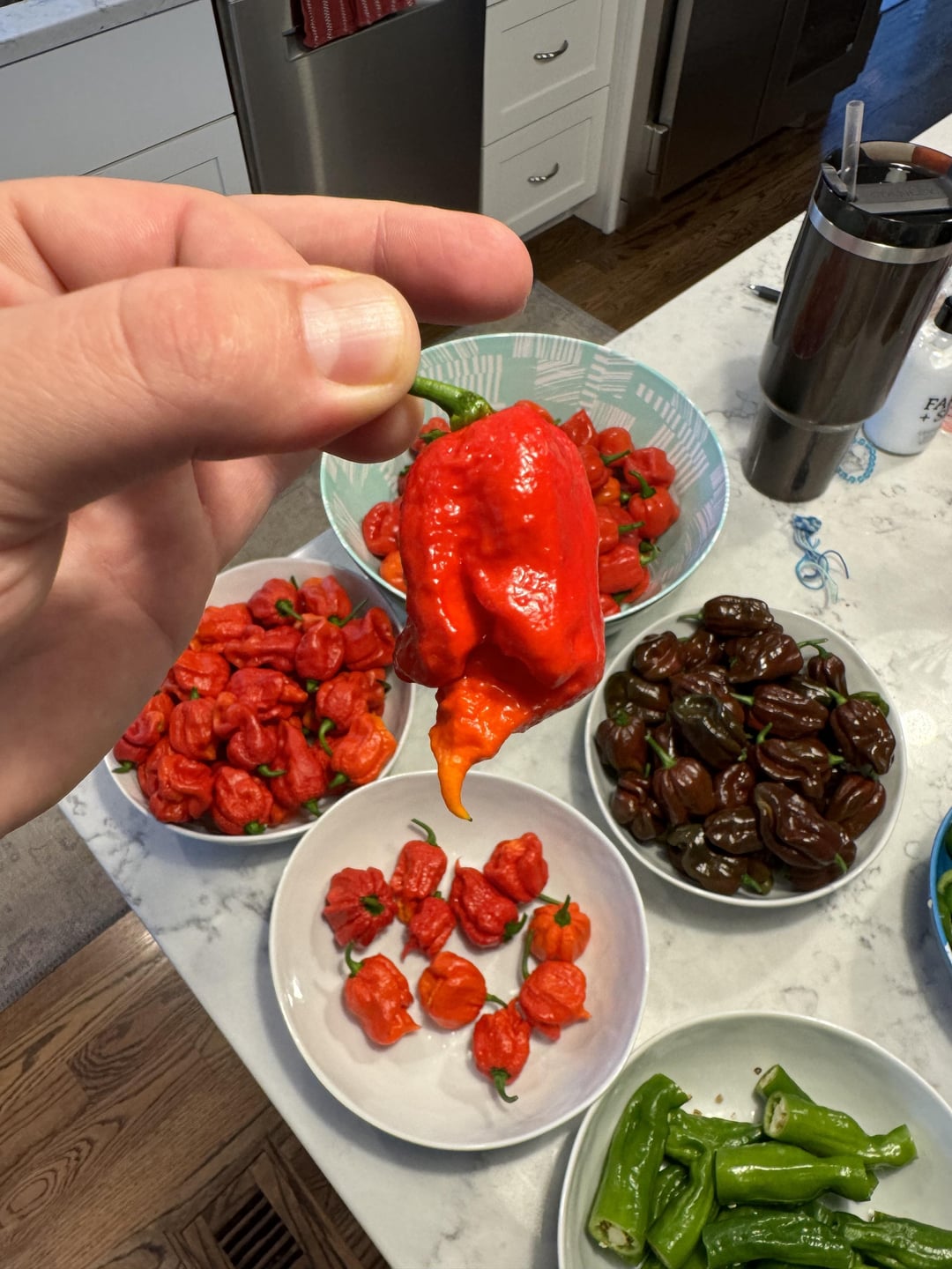 Last year I had ~6 pepper plants. This year I have ~40. I still have hot sauce, flakes and powder from the hundreds of habanero fruits of last year. Now I am inundated! Mix of various habs, reapers, WAL7, ghosts. Its a lot of work deciding what to do with each and when. It will be a mix of powders, flakes, fresh sauces, and ferments.