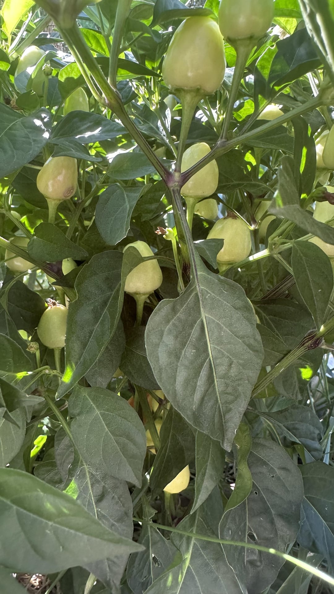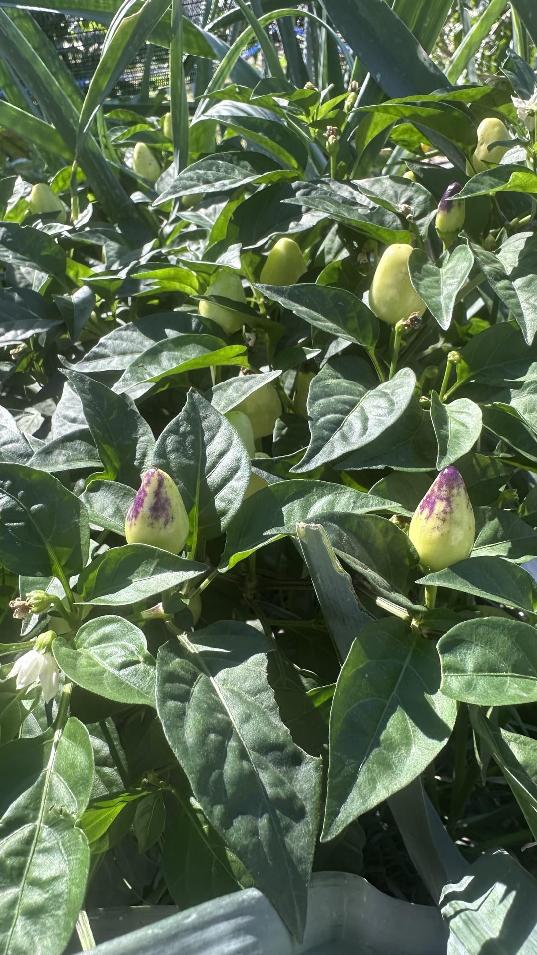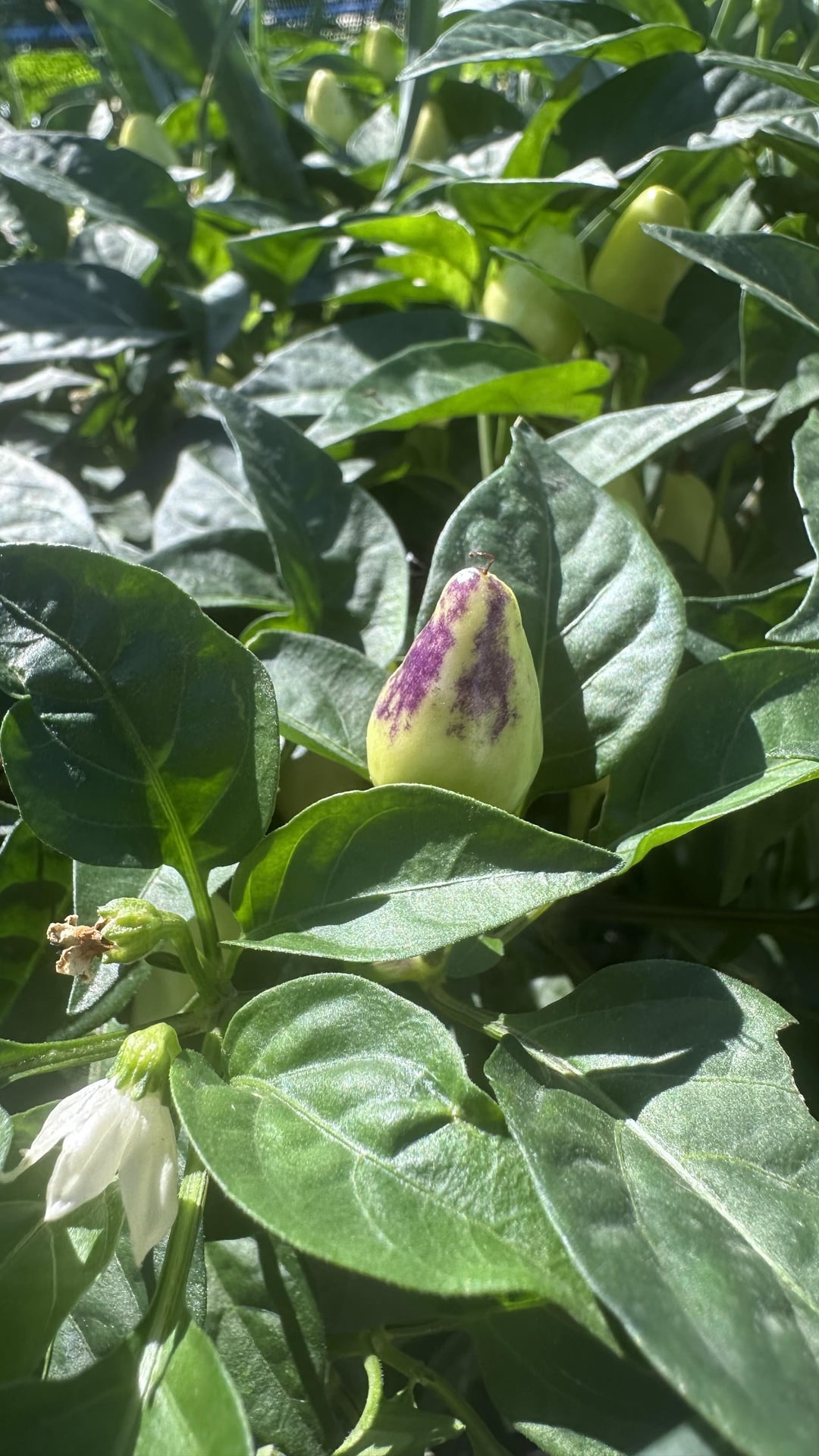 I am growing 8 Caribbean Habanero pepper plants, but one is not like the others. From the start, it grew white and upright. Today, I noticed that the tips were starting to turn purple. I've looked at many white peppers online, but nothing matches. Maybe some hybrid cross that got mixed in??? All the other plants growing look to be habanero