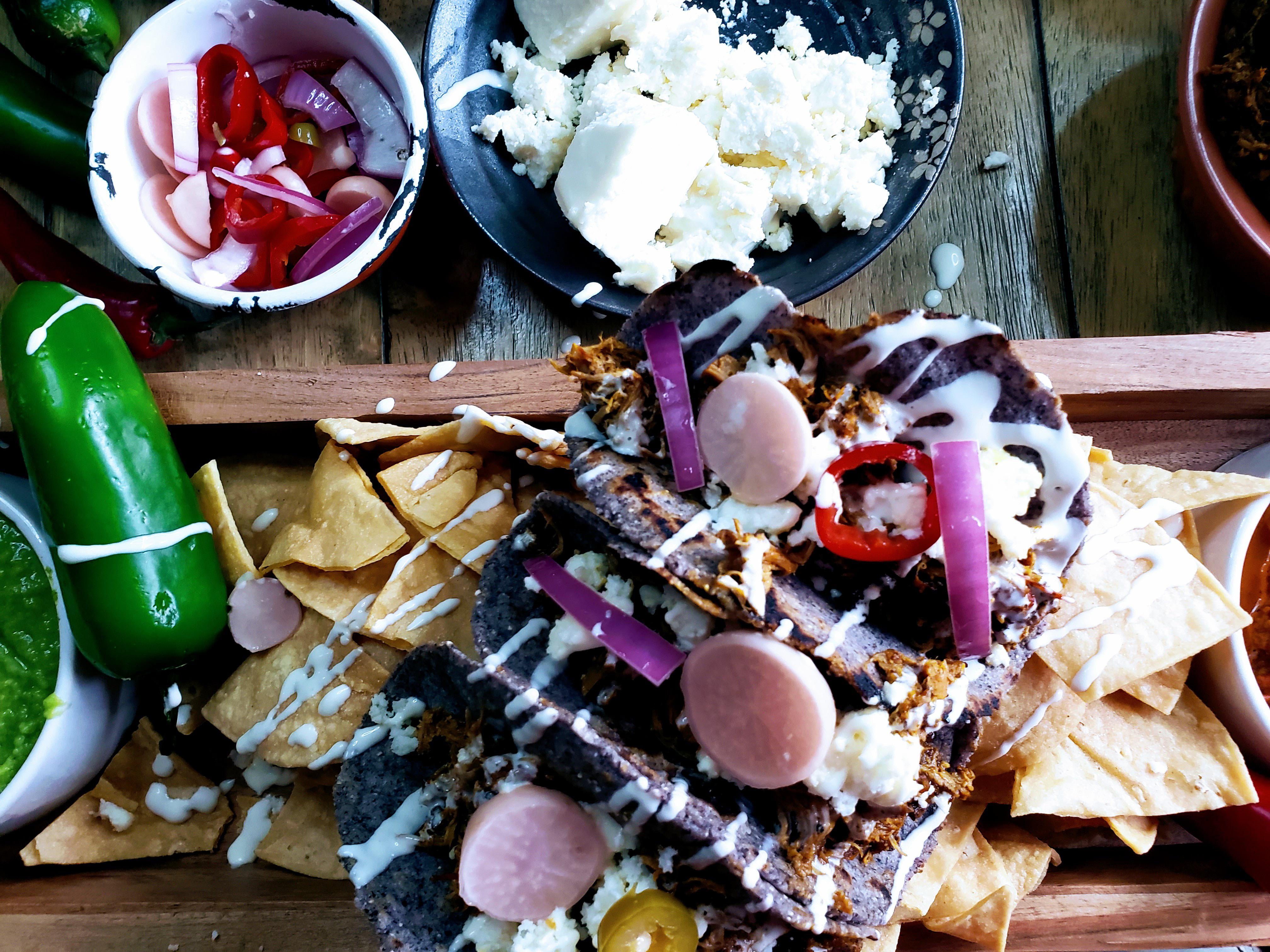 Cochinita Pibil cooked in banana leaves and homemade blue corn tortillas