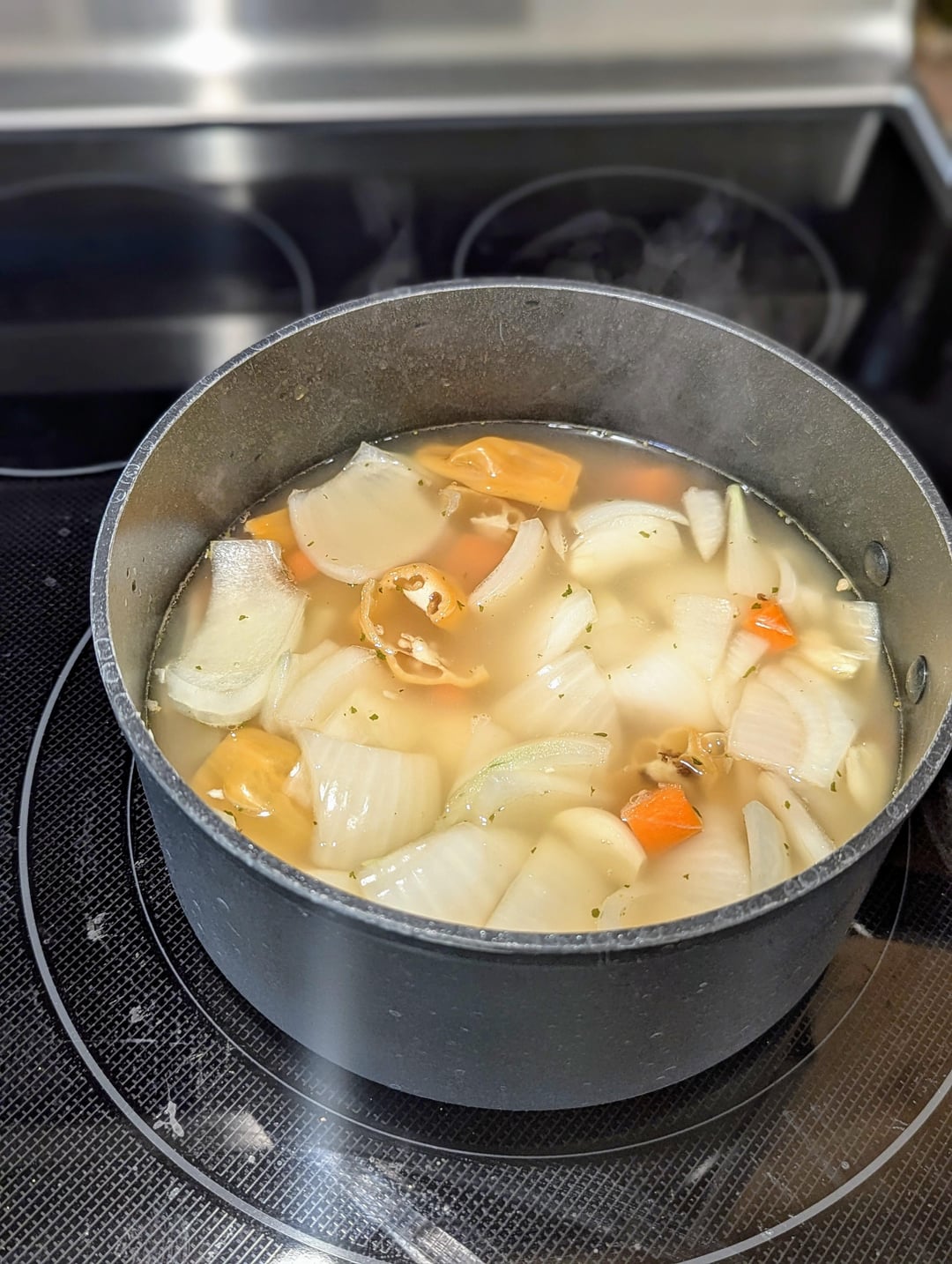 Boil everything for about 30 seconds, then simmer until soft…