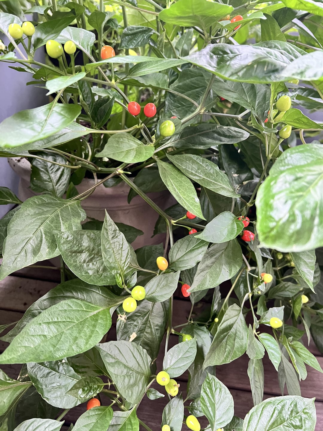 I received these as small plants from a coworker, who received them from her neighbor. Long story short, we aren’t sure what kind of peppers they are.