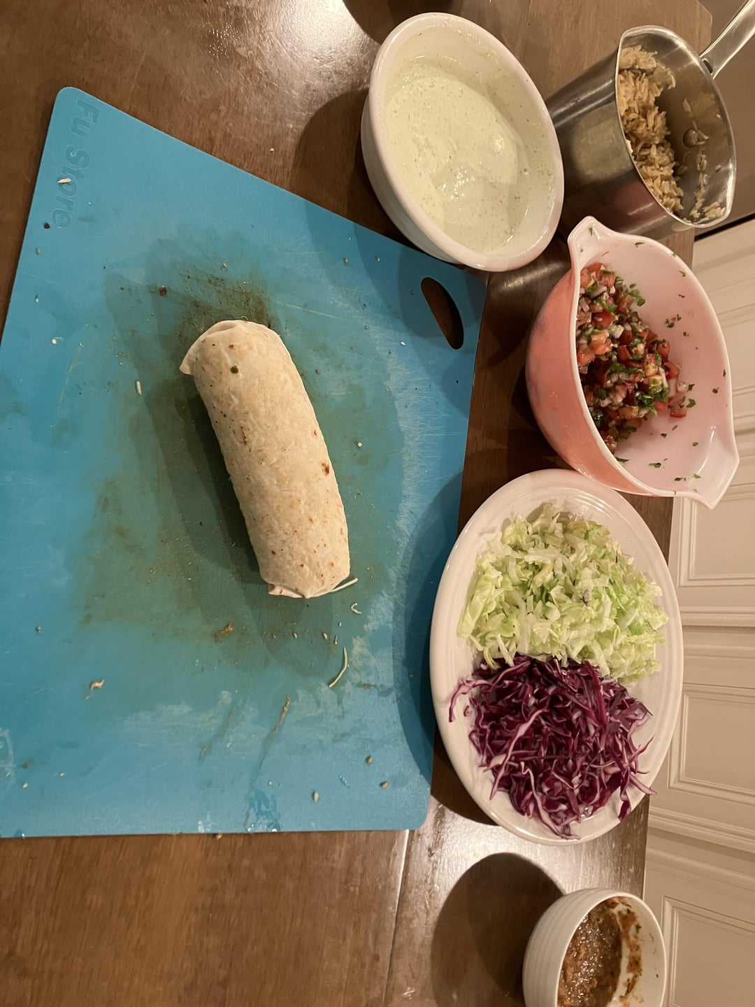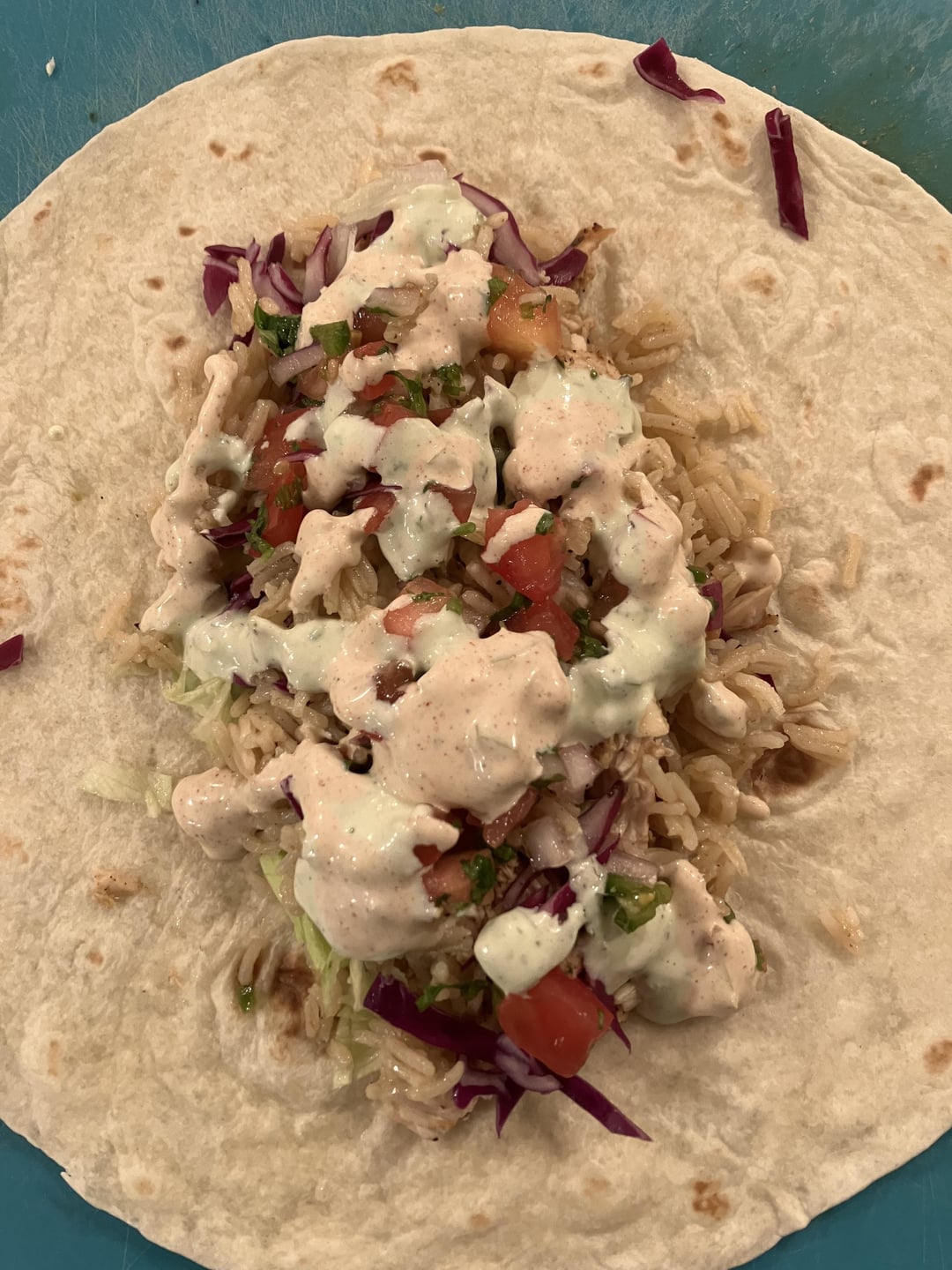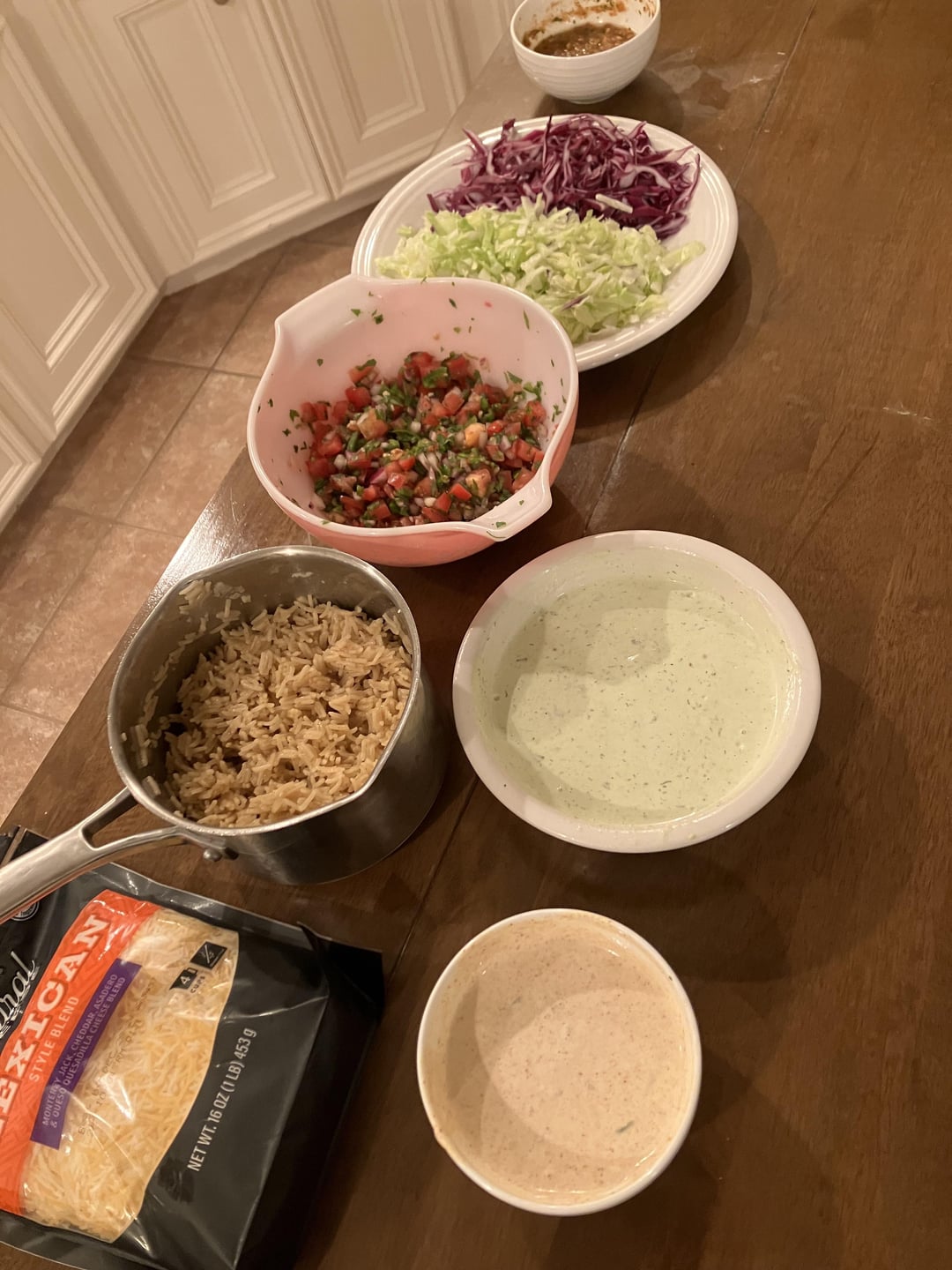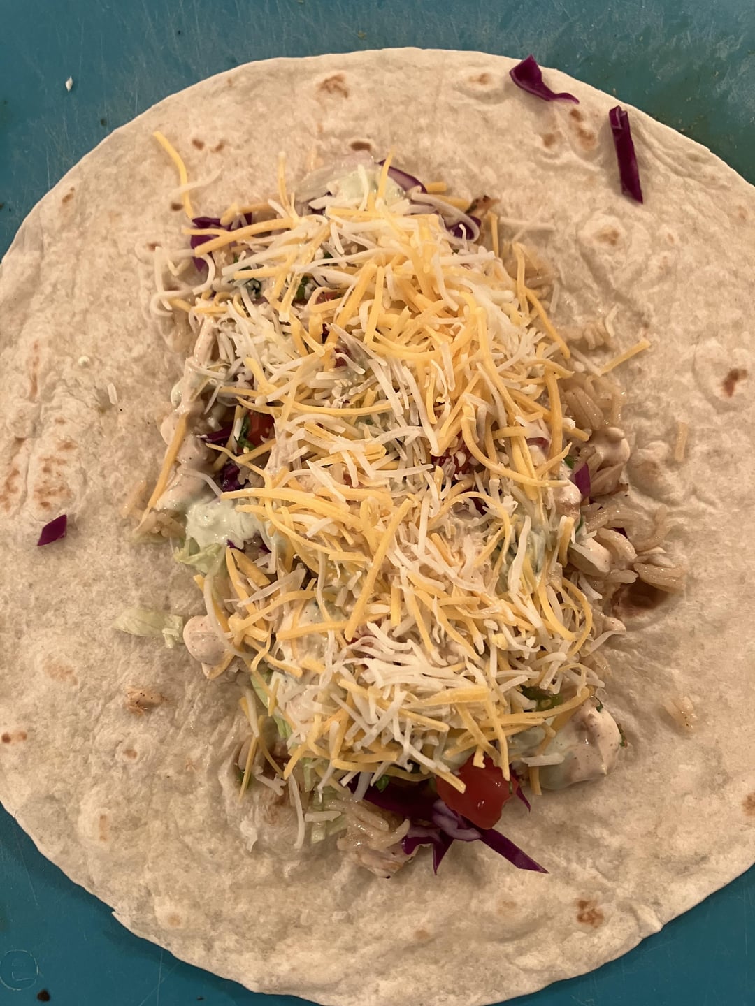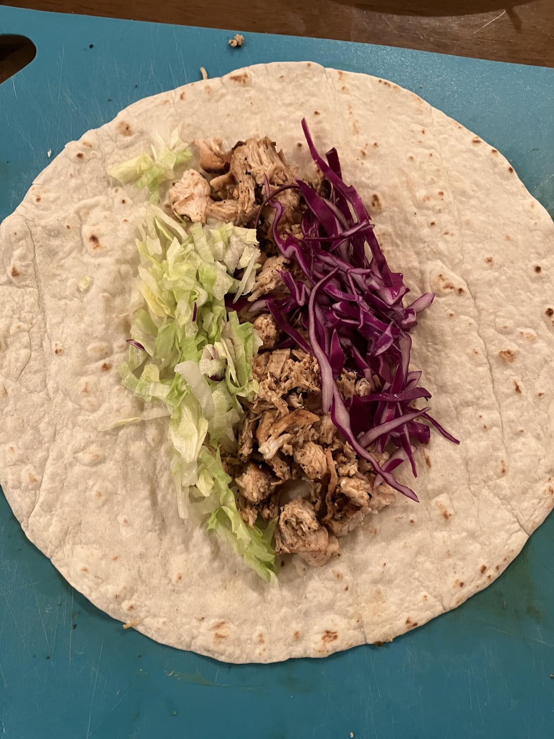 Tried to stay true to form with the ingredients, all homemade: chicken, purple cabbage, iceberg, pico, avocado ranch, chipotle sauce, cheese.