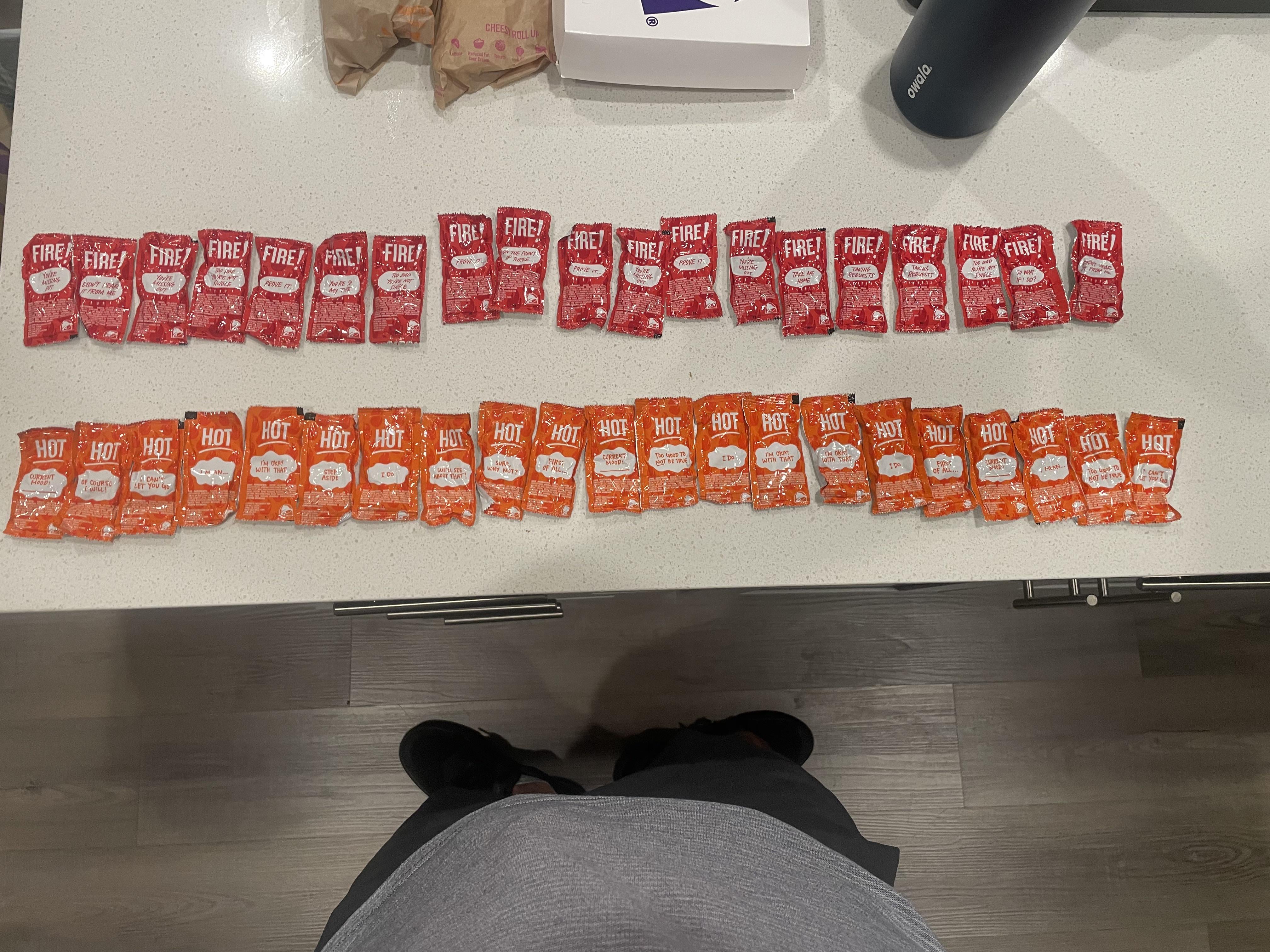there’s been a bunch of these posts lately, idk if anyone realizes that the specific quantity of sauces you ask for does not matter at all, they’re throwing a handful in the bag and calling it a day no matter what