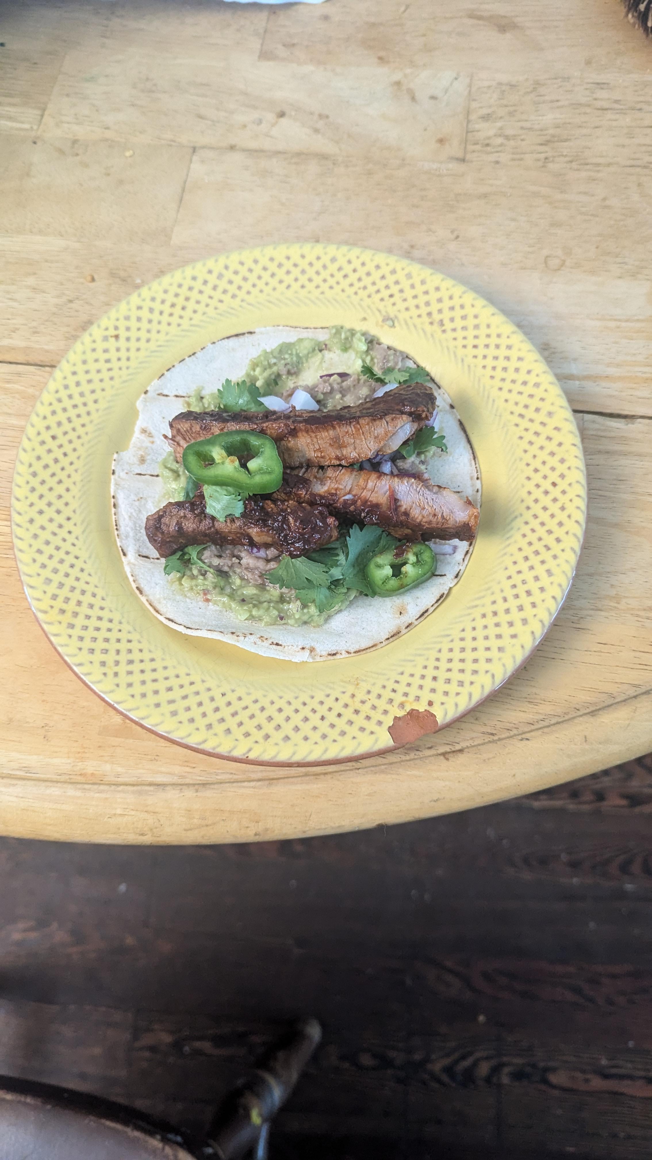 Guajillo Beef Tacos with homemade guacamole and refried beans. by TheLastRulerofMerv Write A CommentYou must be logged in to post a comment.