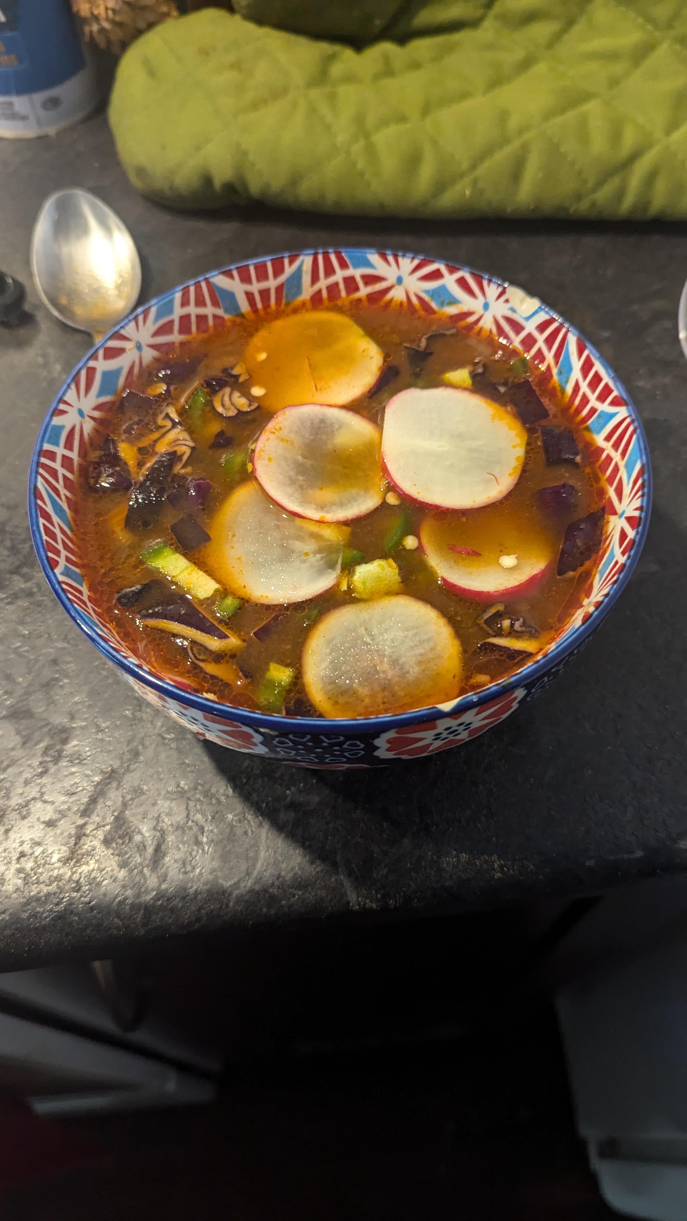 Pozole Rojo with radishes, jalapenos and red cabbage as sides.by TheLastRulerofMerv Write A CommentYou must be logged in to post a comment.