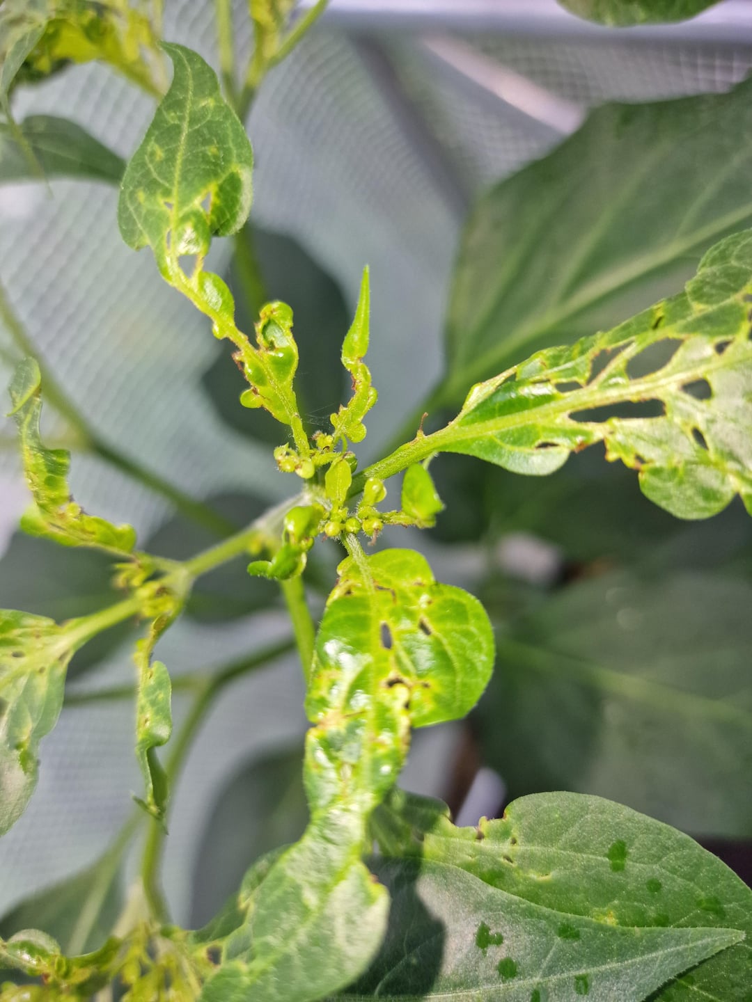 Can anyone identify whats causing this. It seems primarily on the new growth. One of my plants has got quite a lot and the other one just started. I cant find any visible pests like aphids or caterpillars and im not sure what it is. by biasdread Hot peppersPeppersSpicy Stuffsweet peppersWrite A CommentYou must be logged in to post a comment.