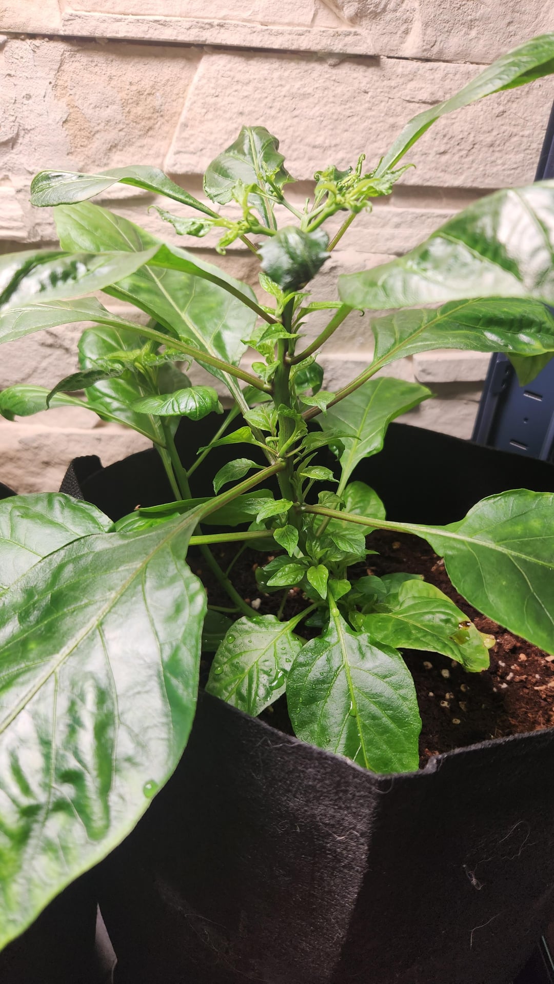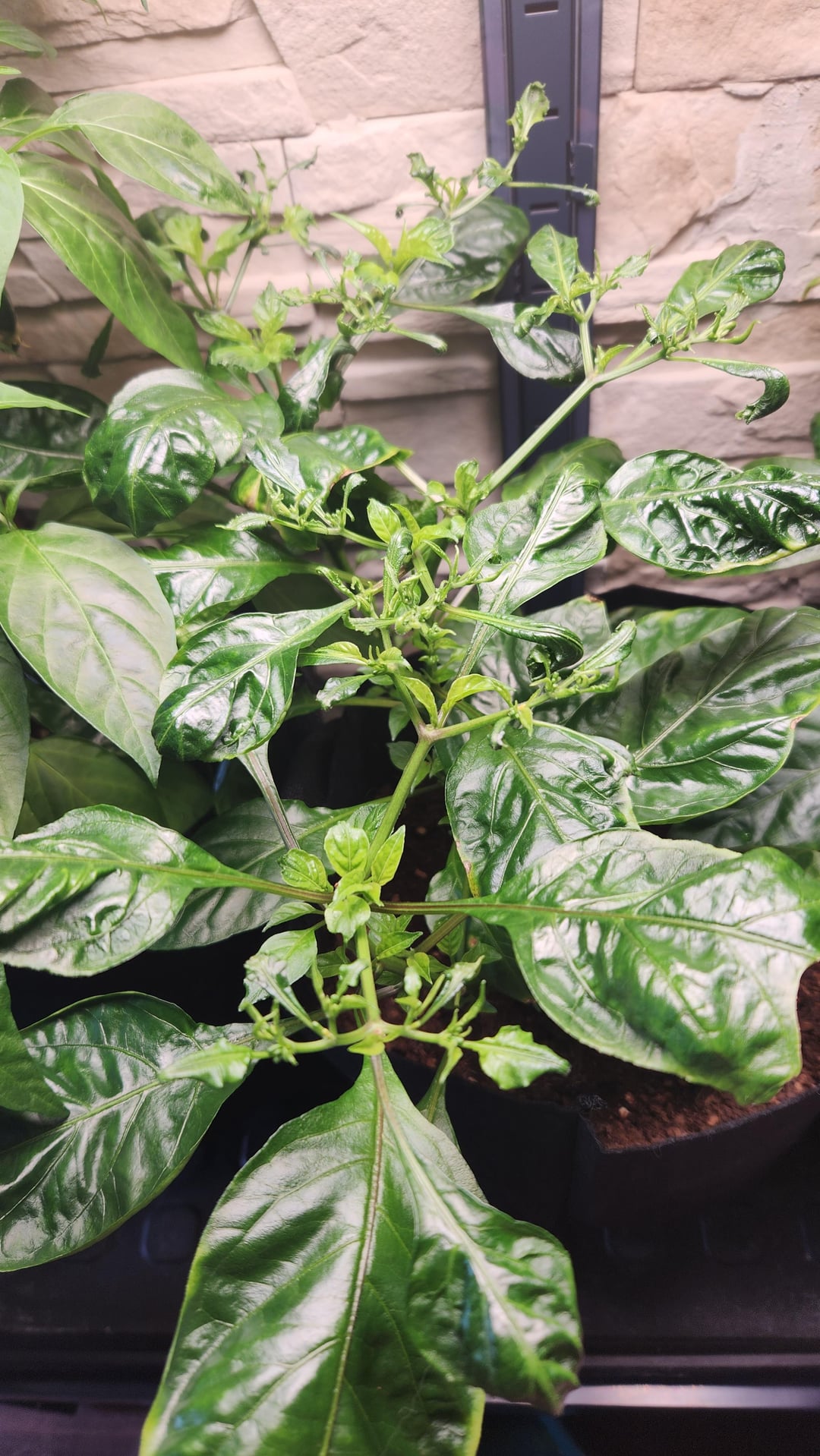 First two are pictures of (presumably) ghost pepper plants, they got really wide then started growing tiny leaves along the main stem. Just wondering if this is normal.