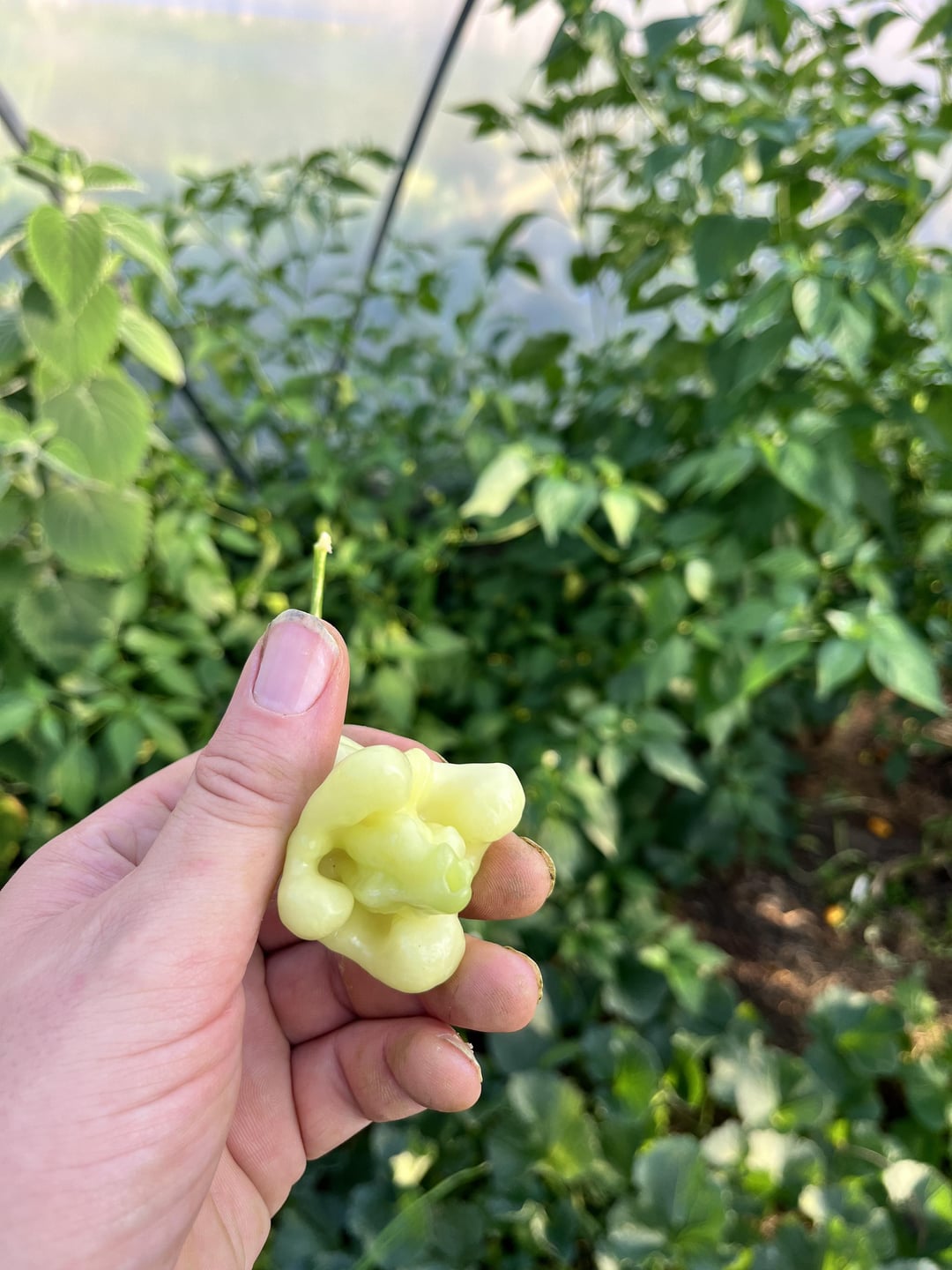Cremeweißer Chili. Die Früchte haben ein unterschiedliches Aussehen. Keine Frucht gleicht der anderen! Fruchtiger Geschmack.