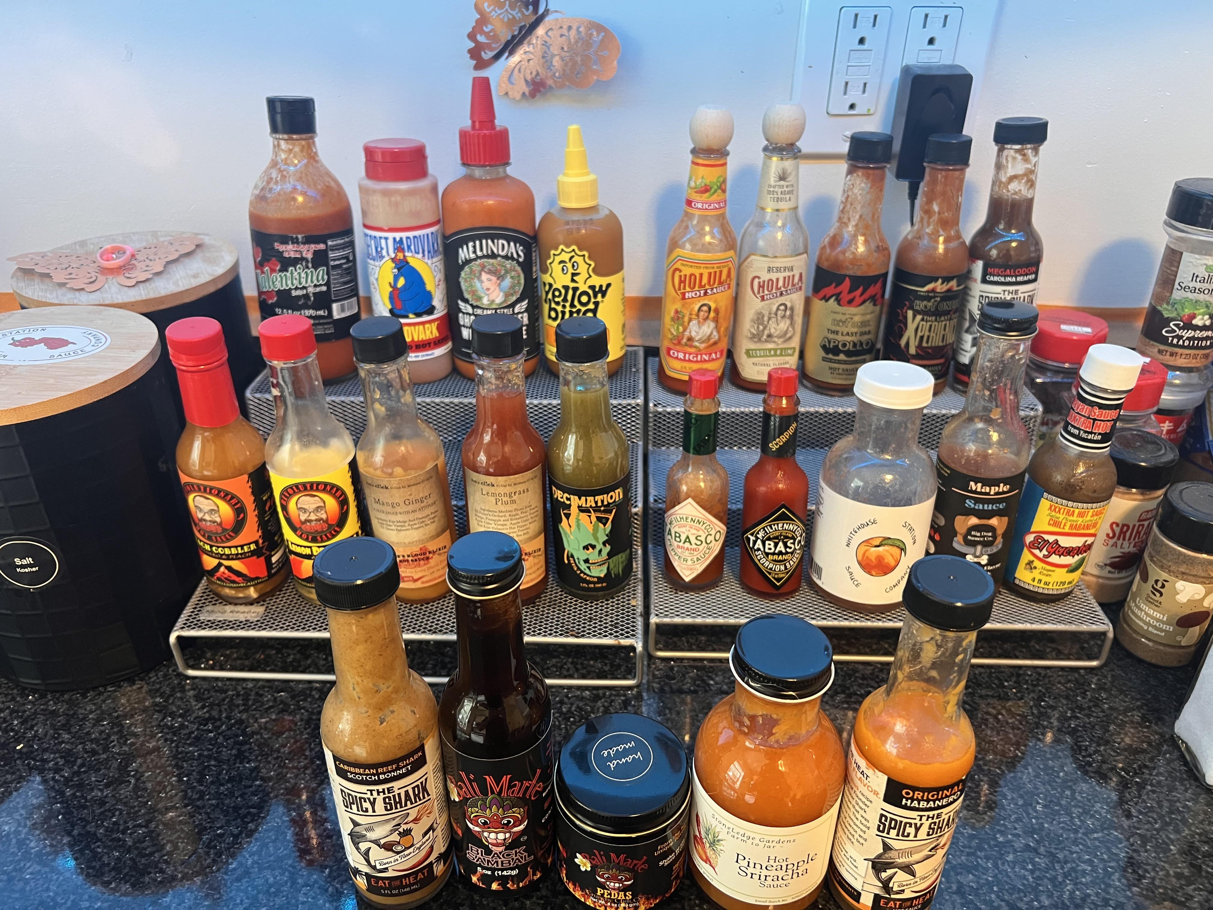 Many of these were purchased in-person at the New England Hot sauce fest this year. Spicy Shark Scotch Bonnet is my favorite, this is my 3rd bottle this year. by Dunno_Bout_Dat hot sauceSauceWrite A CommentYou must be logged in to post a comment.