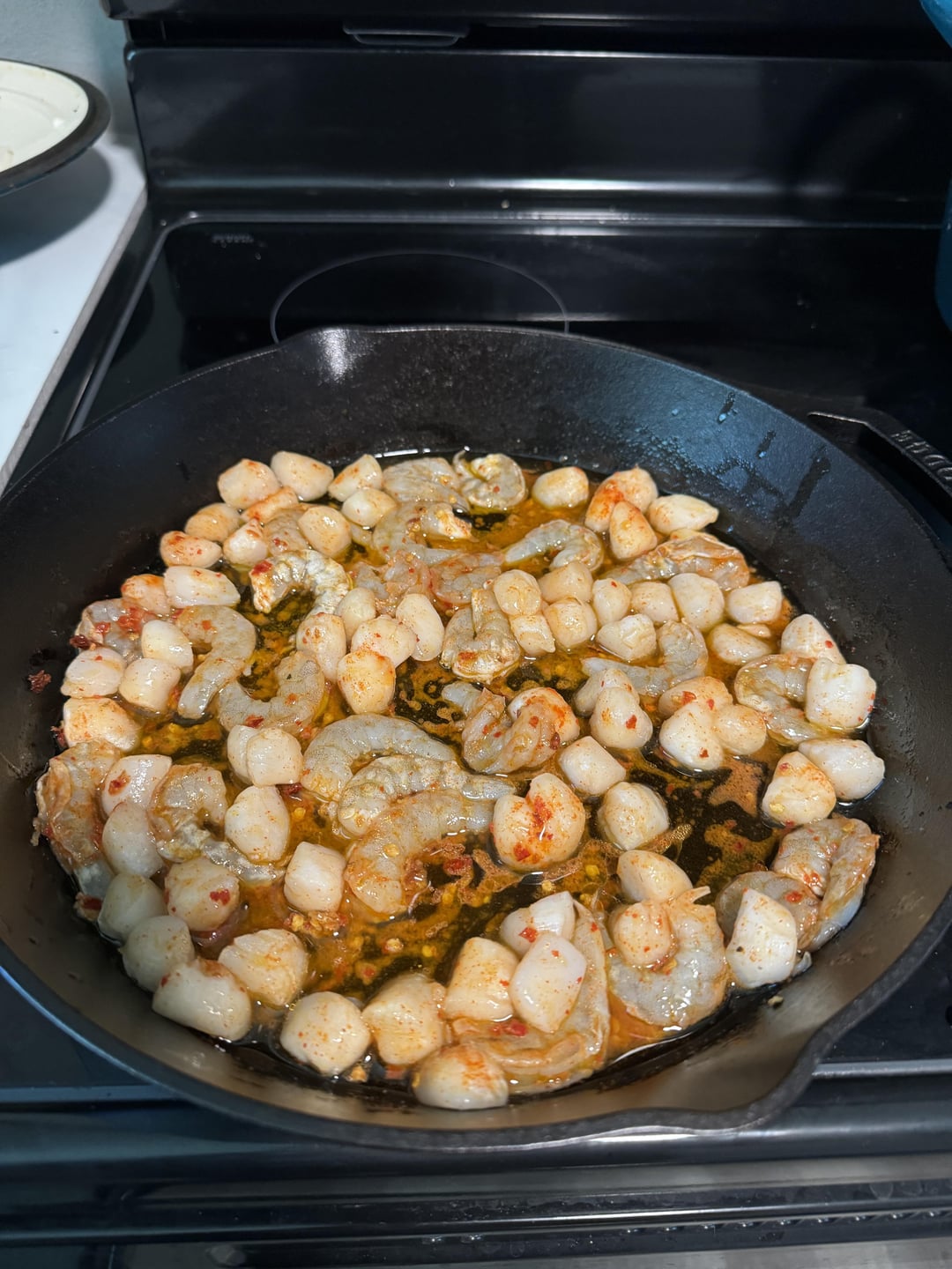 Had a bunch of tomatoes, basil, and super hot peppers from the garden. Decided to make a Fra Diavolo sauce, but like… hot. Really hot. That baggie contains ten crushed up super hots. Reaper, BTR, dragon’s breath, MAMP, and Amnesia.