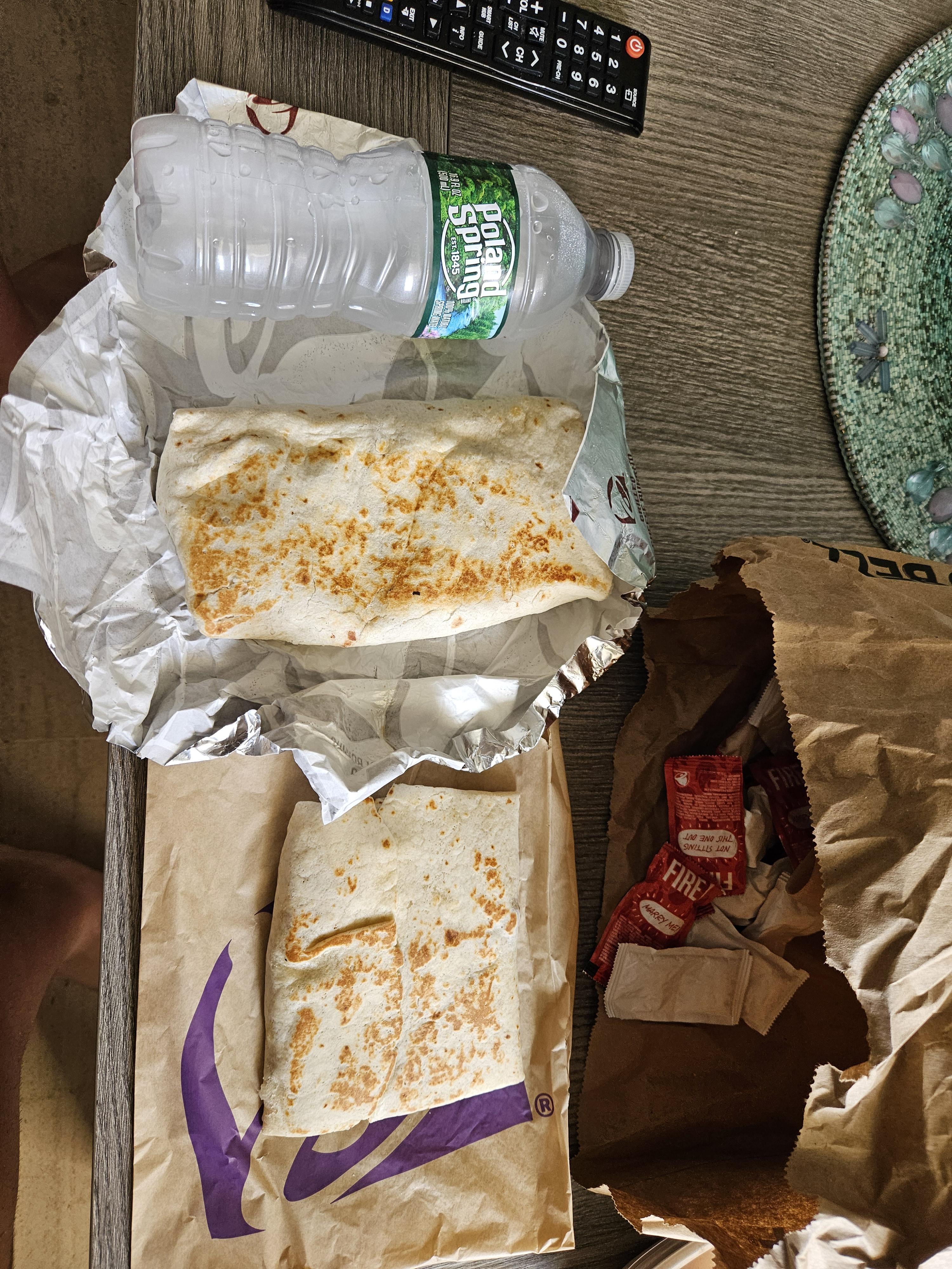 Just spent a week in Aruba and went to Taco Bell twice during my stay. (Yes, I went to many local places that had delicious food too). But the Taco Bell was awesome! They still had my favorite item: the XXL Grilled Stuft Burrito! Which the states hasn't had in years, and I'm still miffed about it. And it was well made and huge, as it should be! They had this cheesy, meaty, potato Crunch Wrap style thing that was also excellent. And their Cheesy Gordita Crunch has bacon! So props to them! US Taco Bell has to step up their game. Anyway, just wanted to share. In the pic is the XXL with water bottle for scale, and the potato crunch wrap thing. 😋