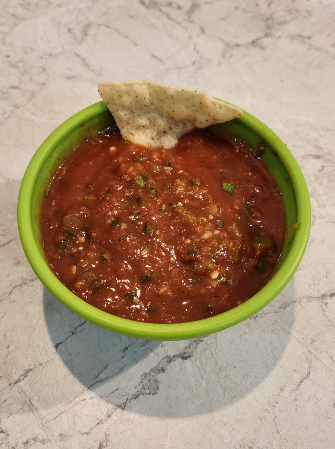 My kid had to do a 2 minute video on how to make salsa for a Spanish class project. This was the salsa.