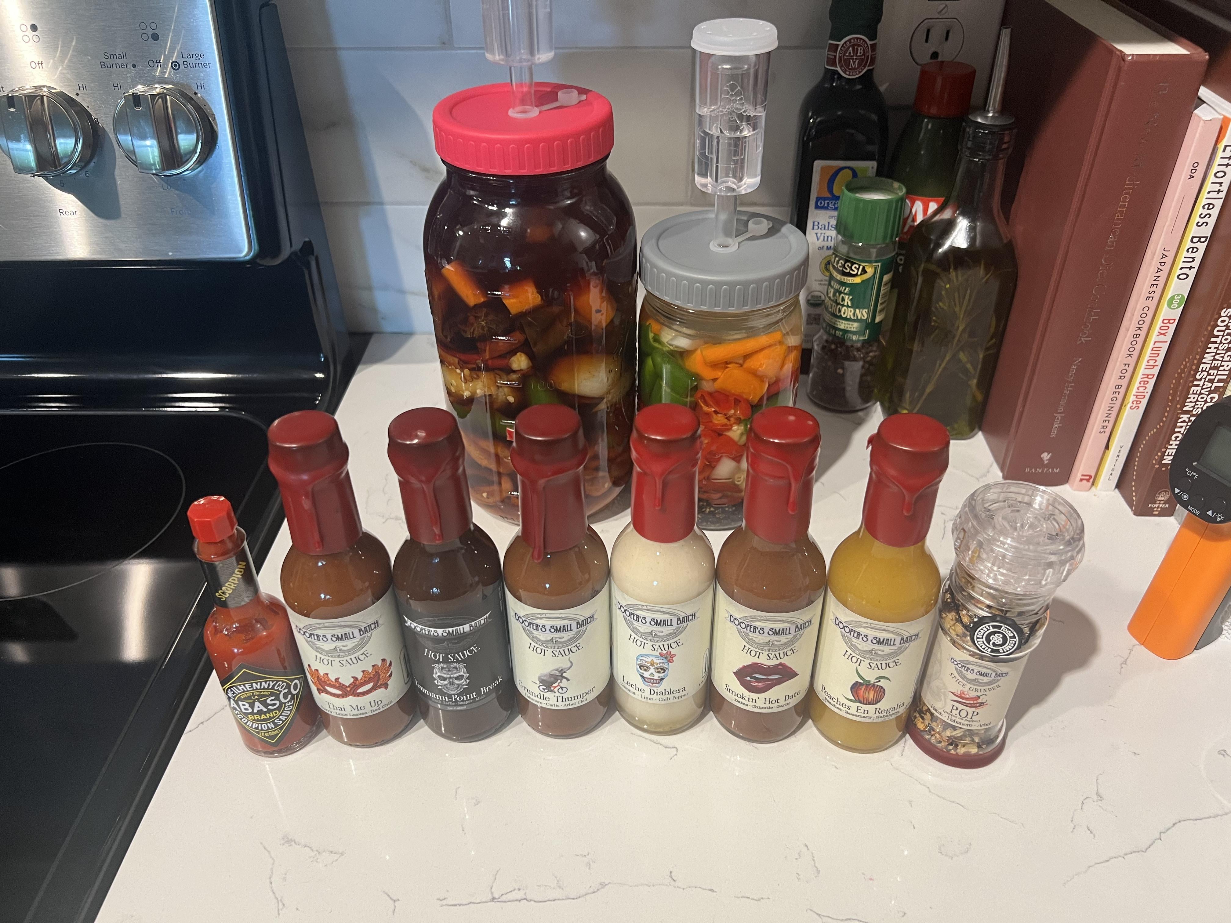 Got this sample pack of Cooper’s. Excited to try them. Any thoughts on these ones? The Diablesa is supposed to be interesting. Also started a ferment over the weekend. The left is a smoky habanero and the right is Serrano and scorpion peppers. First time making hot sauce and just kind of winged it.