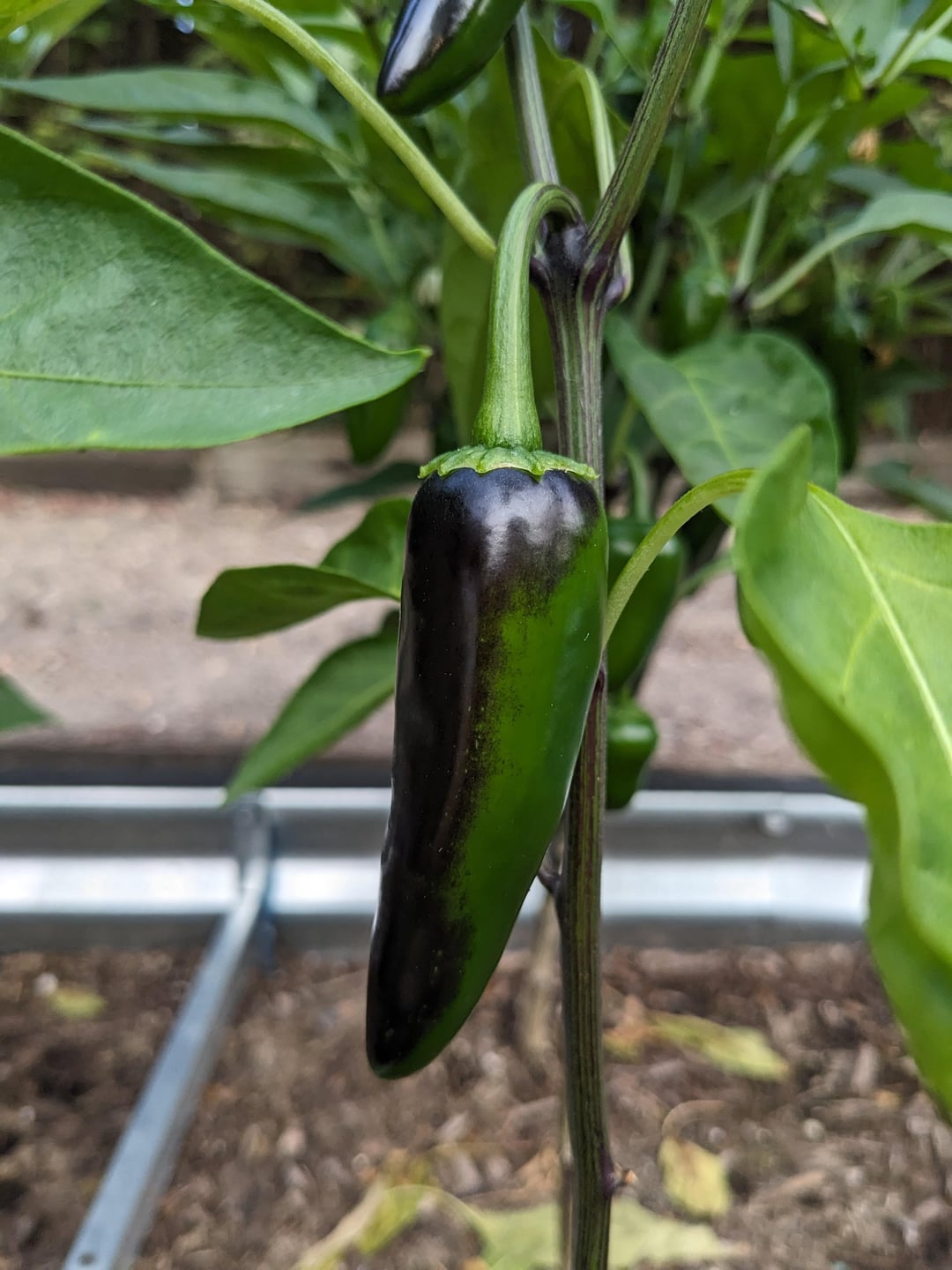 Noticed that the peppers on one of my jalapeno plants is developing a purplish black streak that is spreading to the whole pepper.