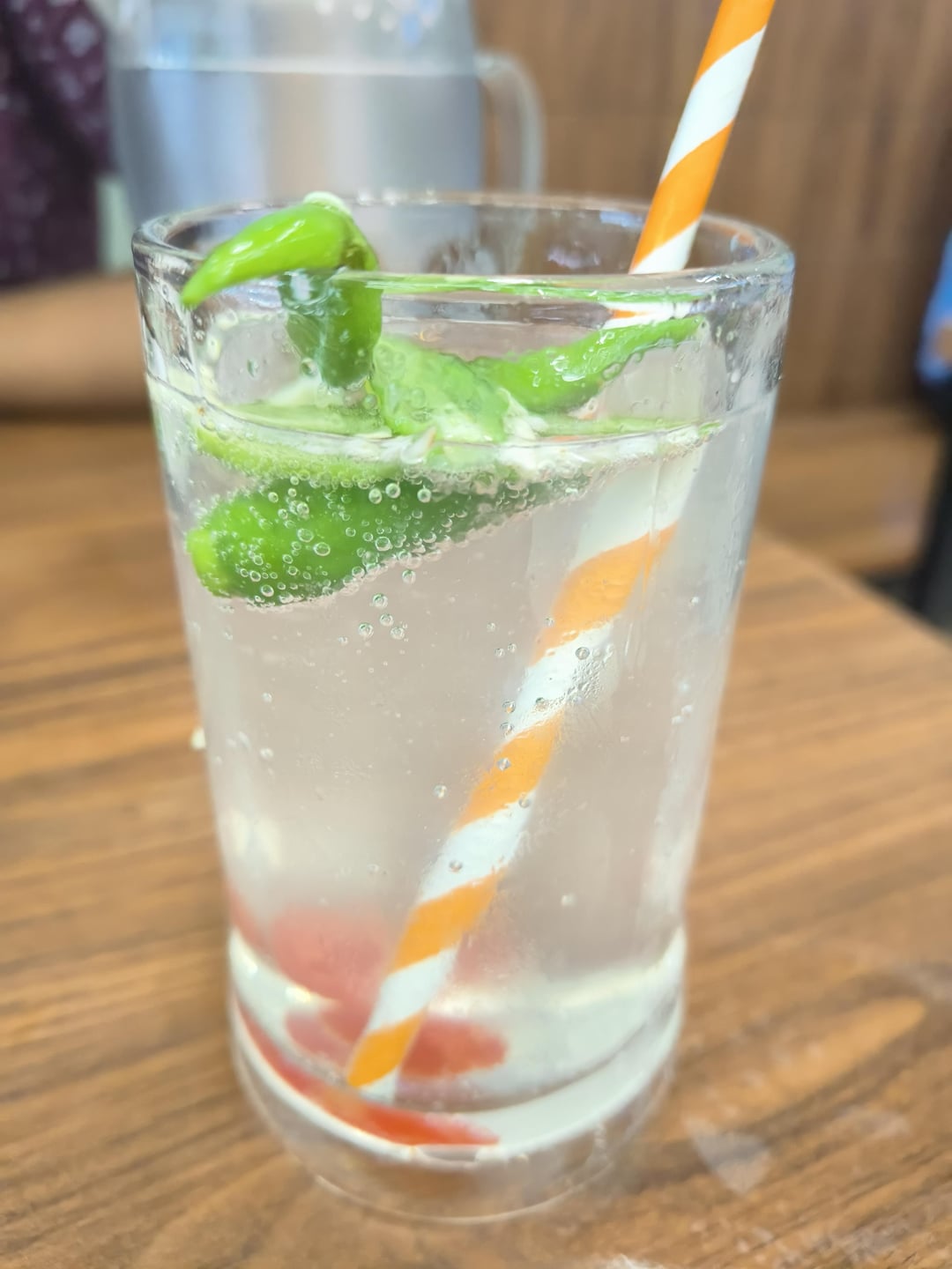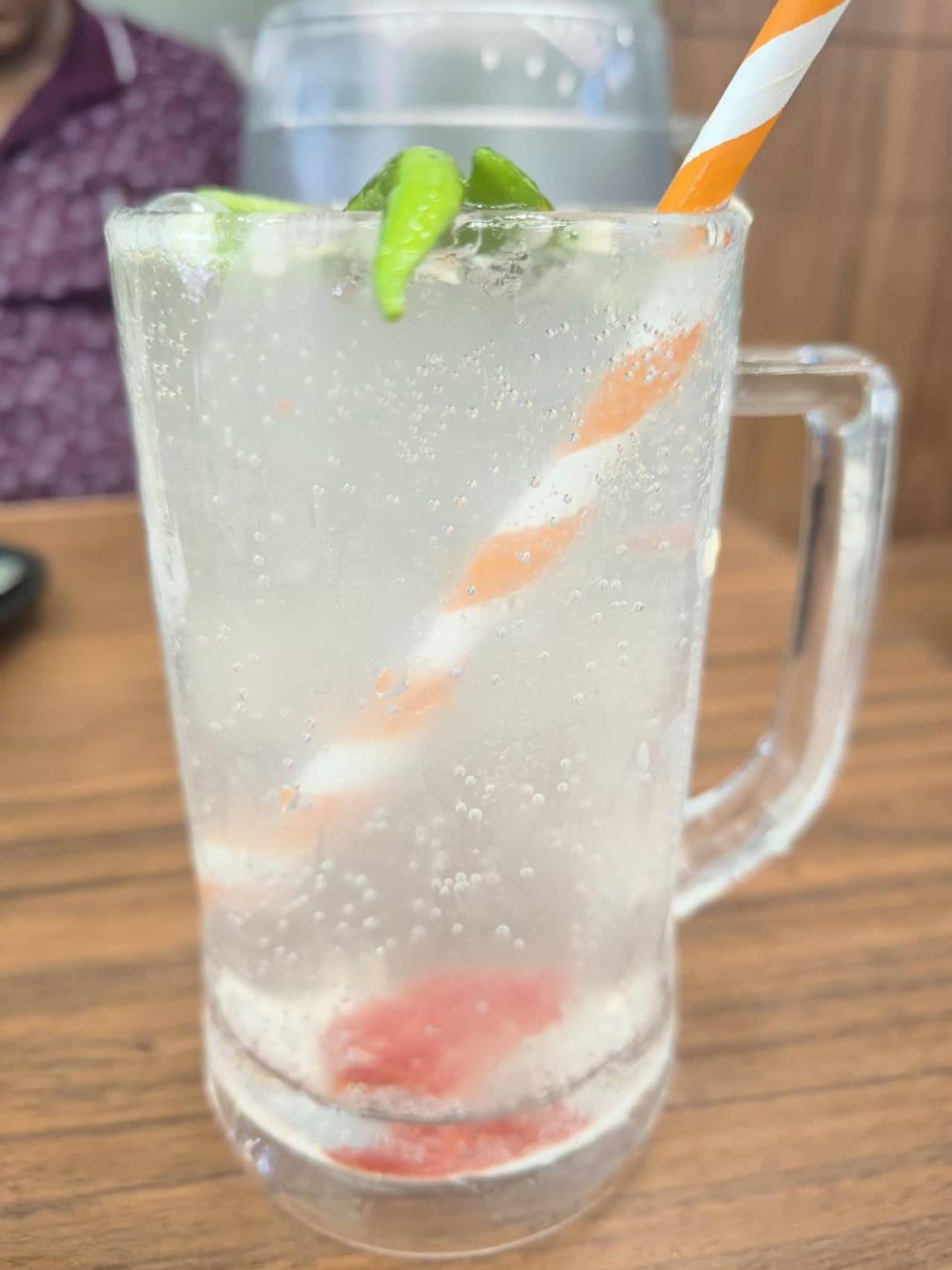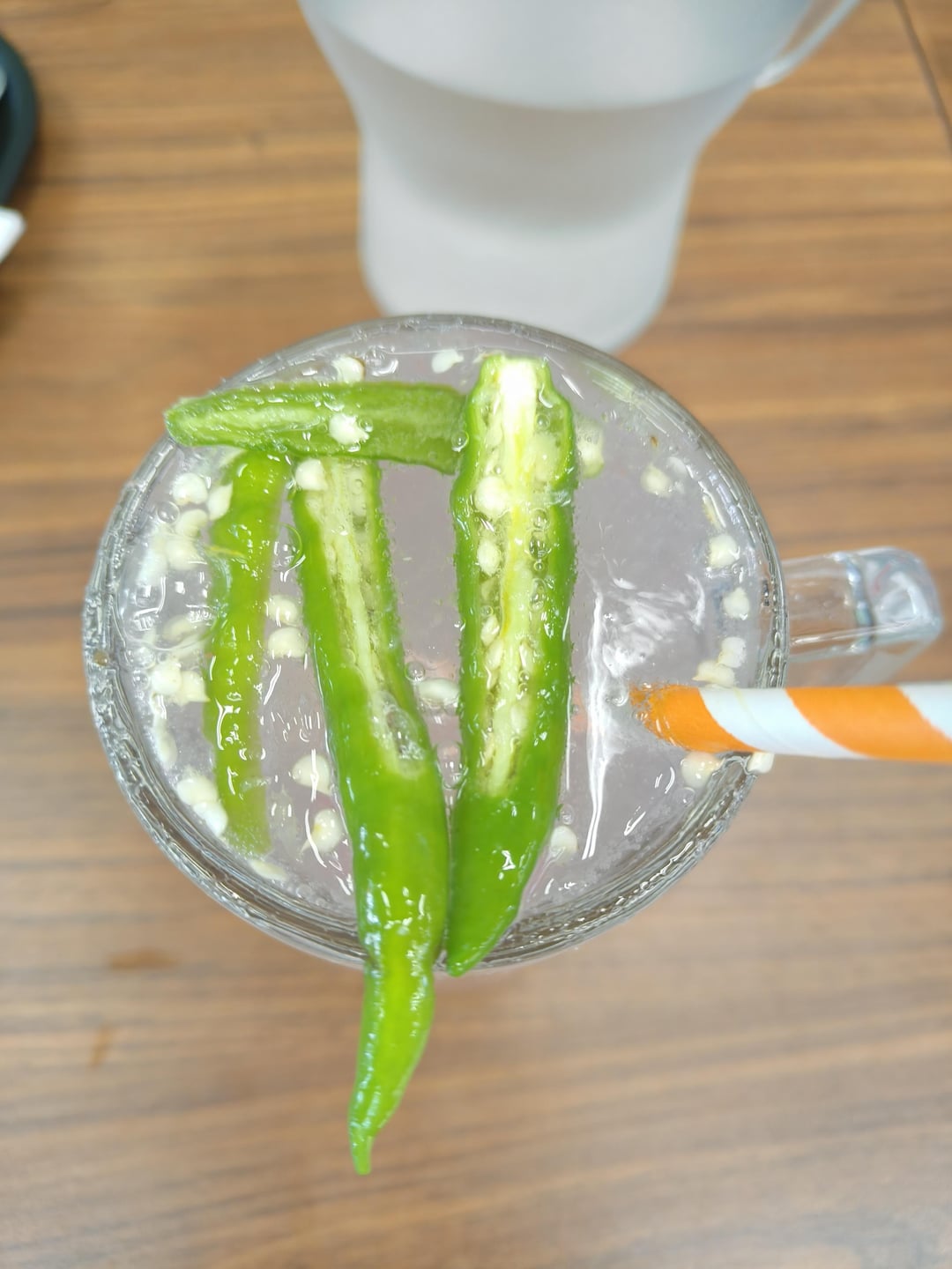 It's a green chili lime soda in a neat cafe here, originally served as a salty drink but I asked them to add sugar, I used it to lessen the severity of my cousin going for a millshake (guy was having a bad cold and his mum will kill me if I take him with a strong cough so HAHAHAHA)