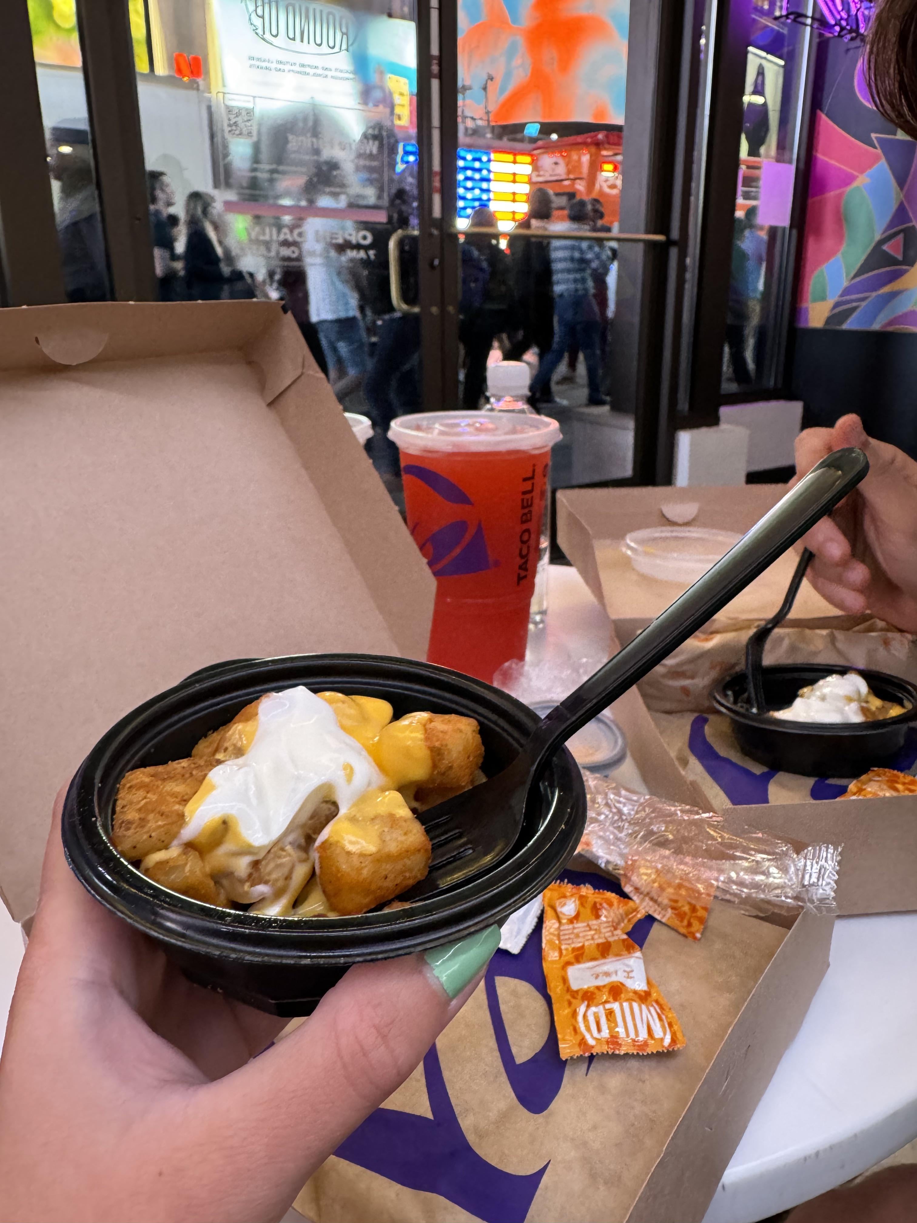 Left a show in the theater district last night and wanted Taco Bell. We were going to wait until we got off the lirr but we decided to stop at the one on Broadway in Times Square. That place was poppin and took a while but that was some of the best Taco Bell I’ve ever had. And we had the pleasure of people watching the creatures of time square while eating our boxes!