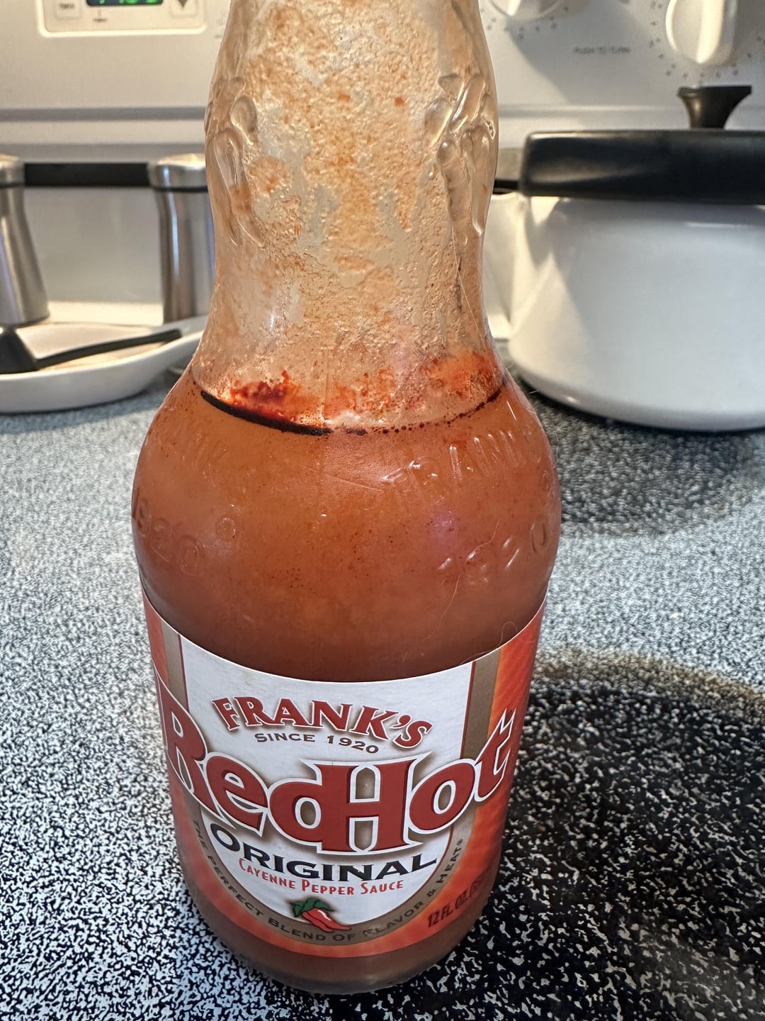 This bottle of Franks has been sitting in my fridge for a couple months seeing no use… when I grabbed it today it has this weird black stuff in it, when I shake it up it looks normal again tho. What is this? Safe to eat still?