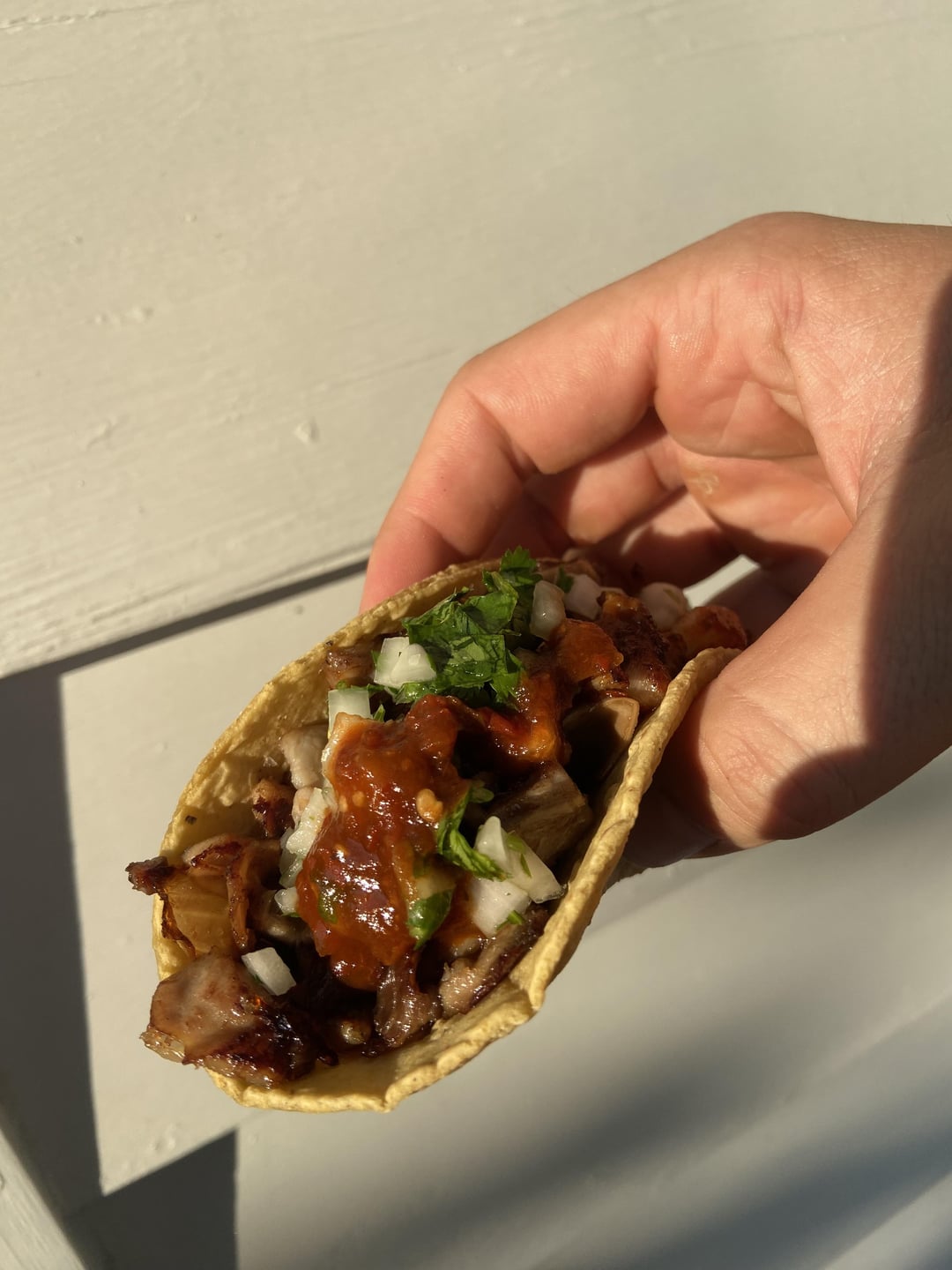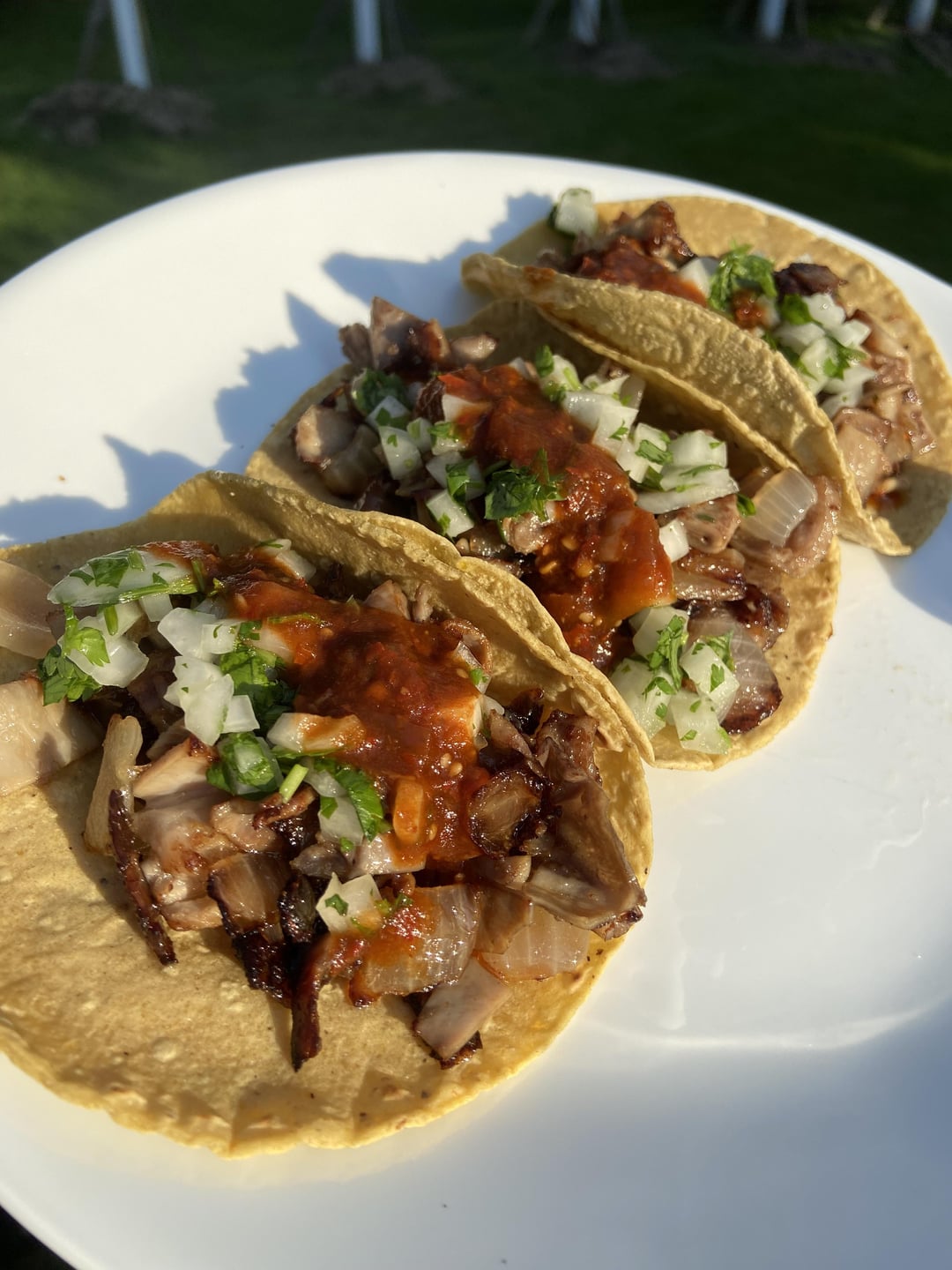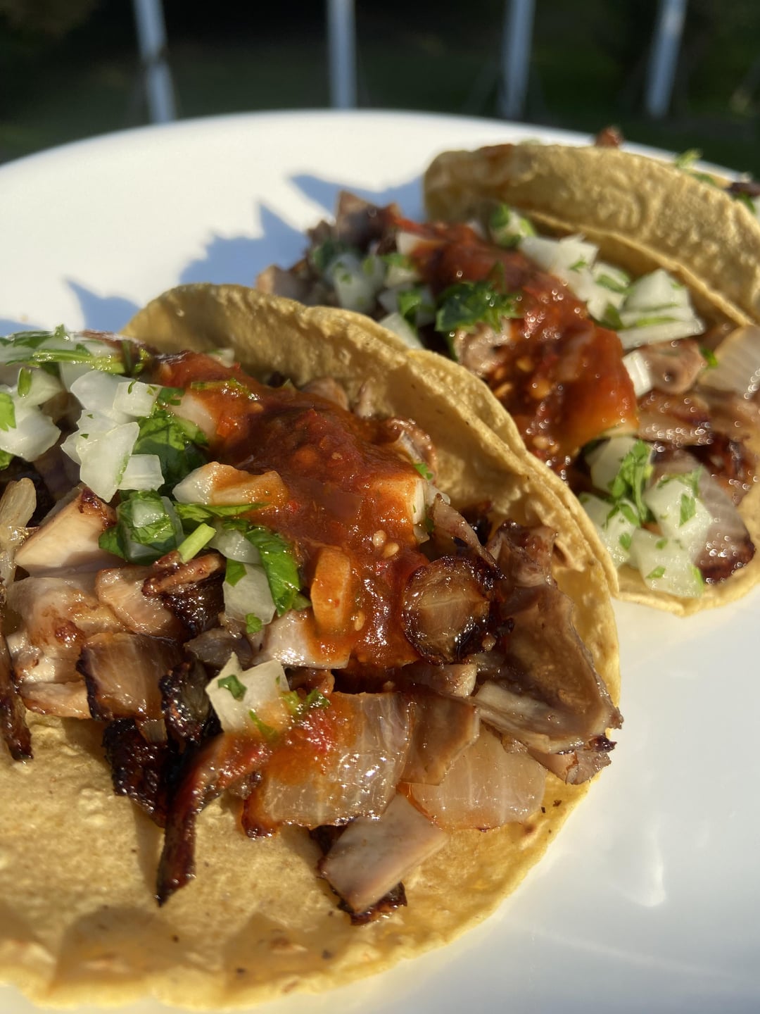 Buche, onions, cilantro, and salsa roja on homemade corn tortillas which I made starting from the kernel. Hope you enjoy the pics