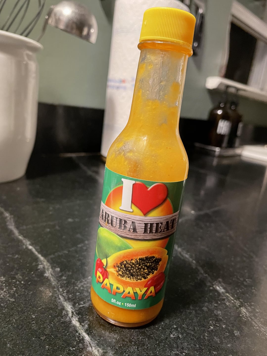 Gifted to me by my neighbor. I usually go for more intense heat but I wasn’t complaining about free hot sauce. Then I tried it and I’m already planning on buying the 16 oz bottle when this runs out. Pretty salty but intense flavor. Pickled vegetables as an ingredient was new to me and it’s really fantastic. Can’t recommend it enough. I put some on crackers and cheese and mixed some in with salsa. Great for both applications.