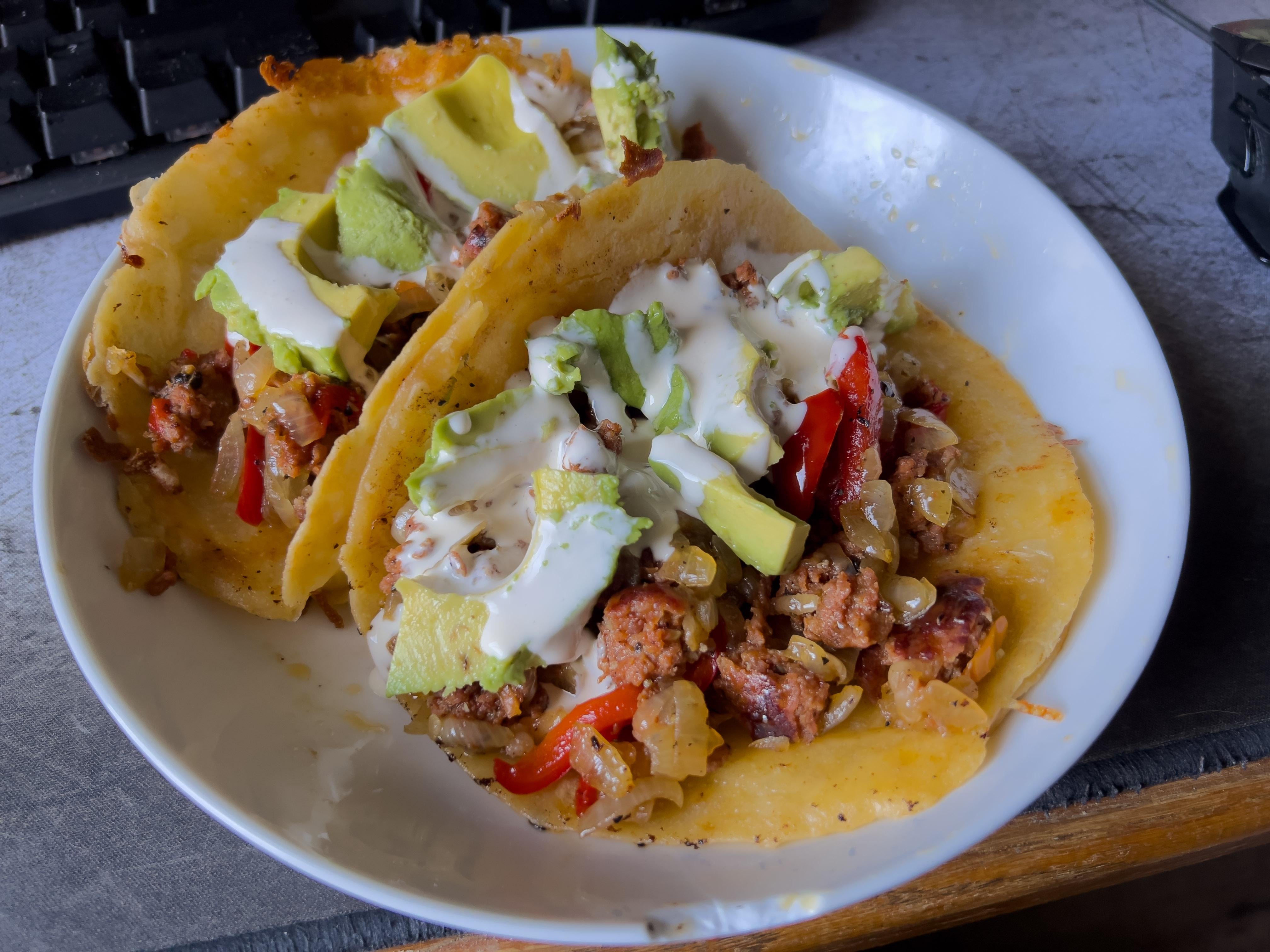 Made some quesadilla tacos with chorizo, onion, habanero, corno di toro (pepper), avocado and crema for breakfast! by SLO_Citizen Write A CommentYou must be logged in to post a comment.