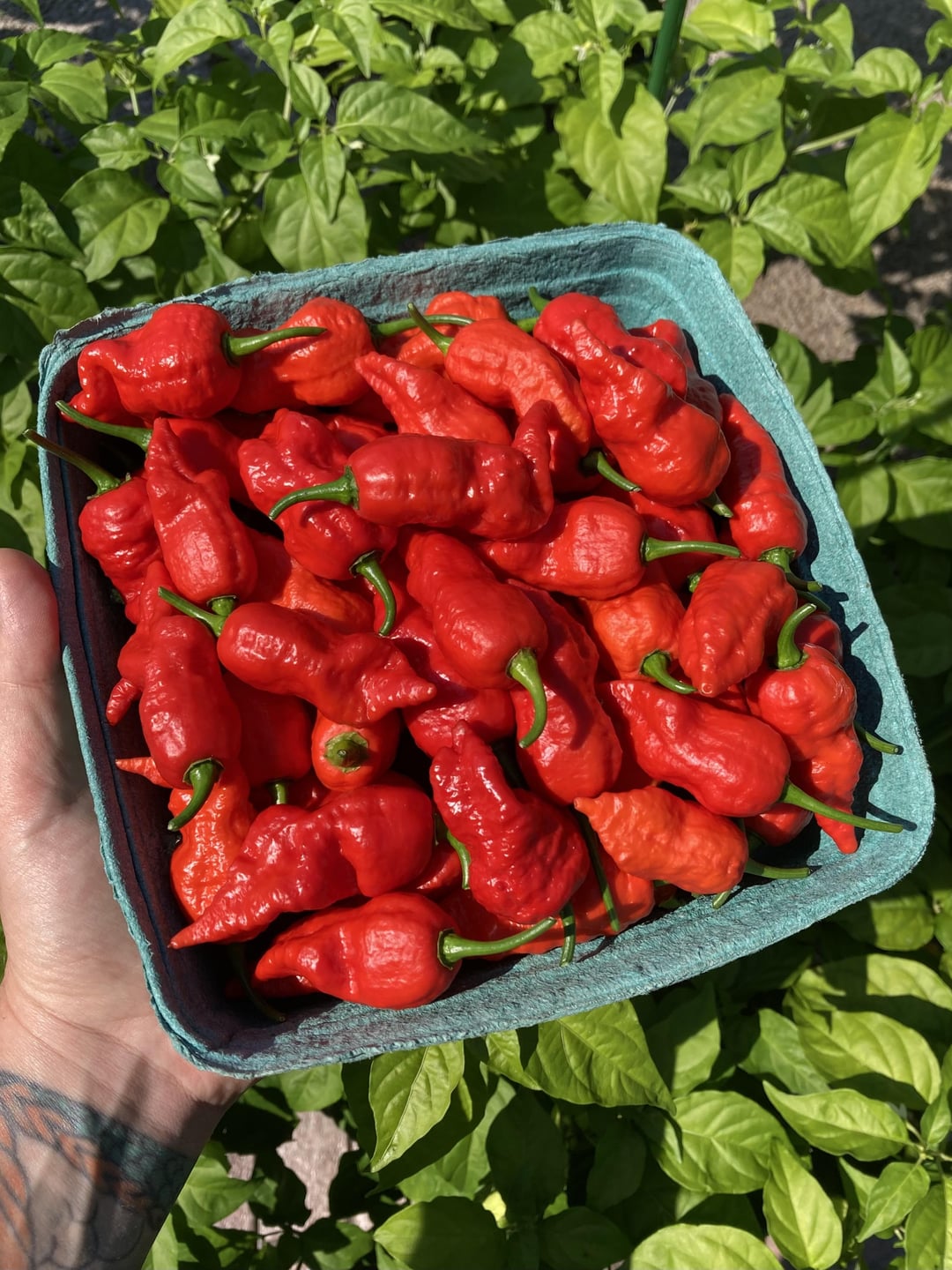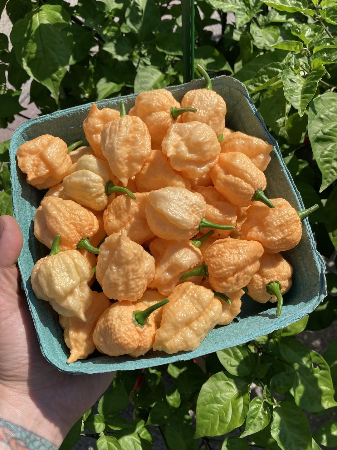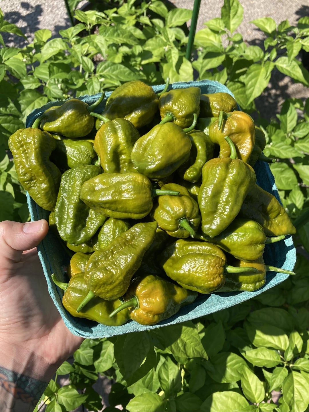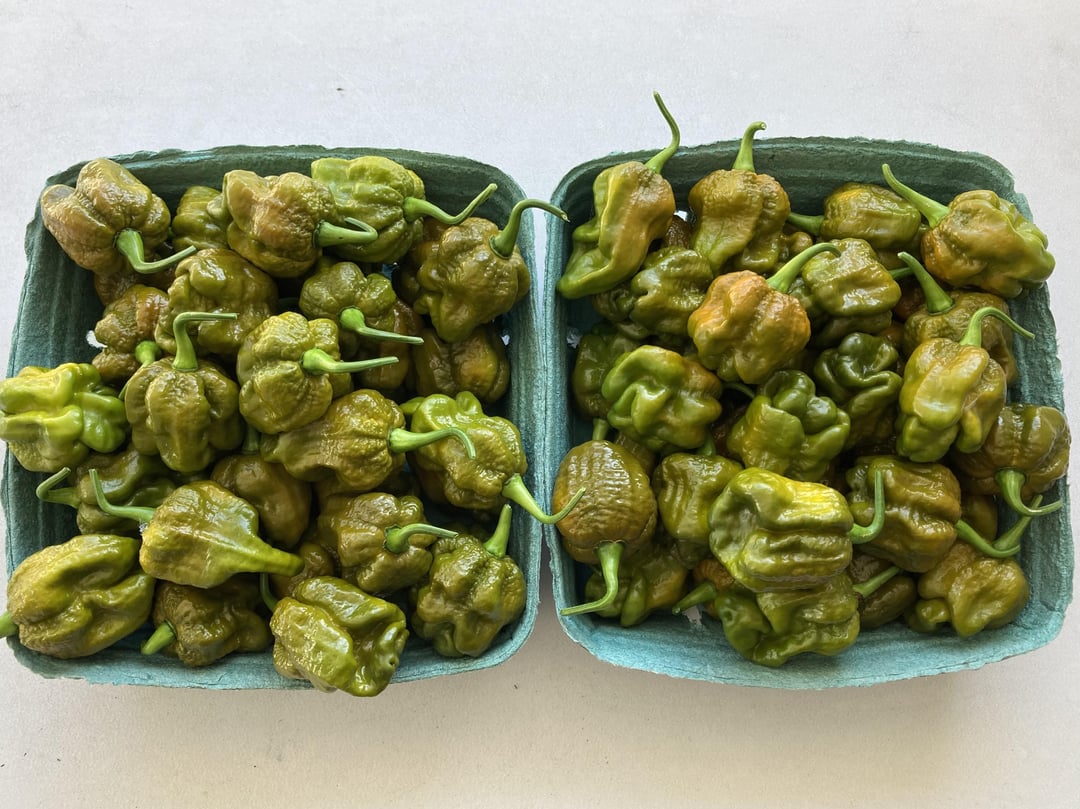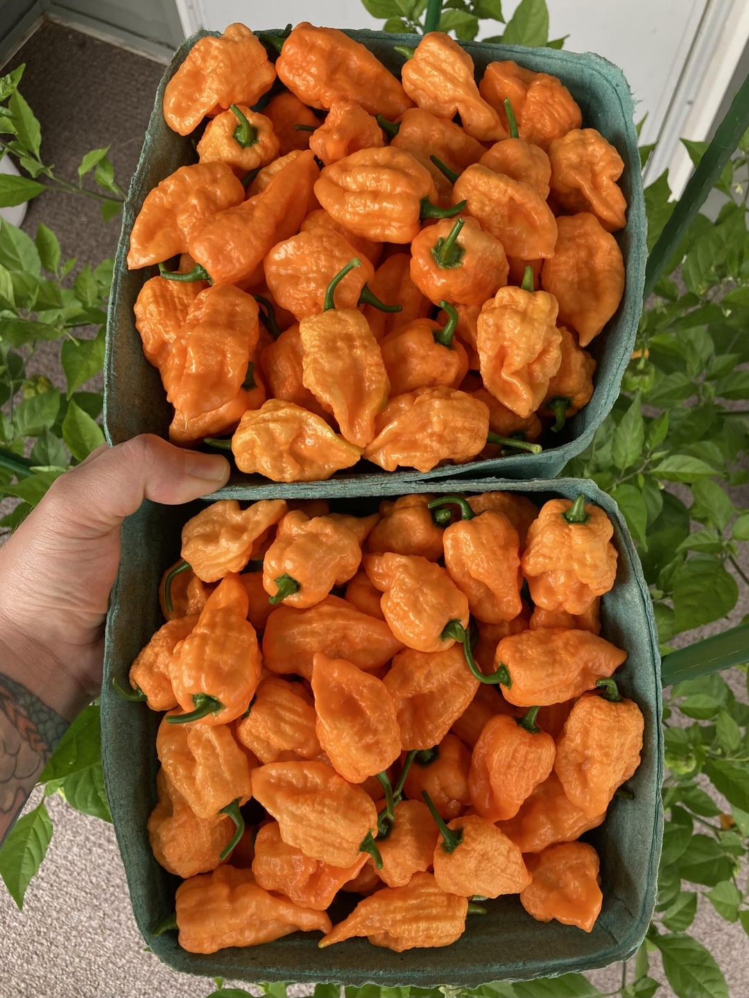 Apparently lots of people have been having a good season with their hot peppers lol. This was my harvest just from the other night, and that’s on top of the 60+ I’ve already taken from the plant. When I went to the farmers market in early May with my wife and she pointed out they had baby Carolina reaper plants for sale for $6… I never in my wildest dreams thought it would grow into the beast it is today. There are probably half a dozen almost ripe peppers on there right now, with at least a couple dozen green ones growing, and there are still tons of flowers coming out everywhere.