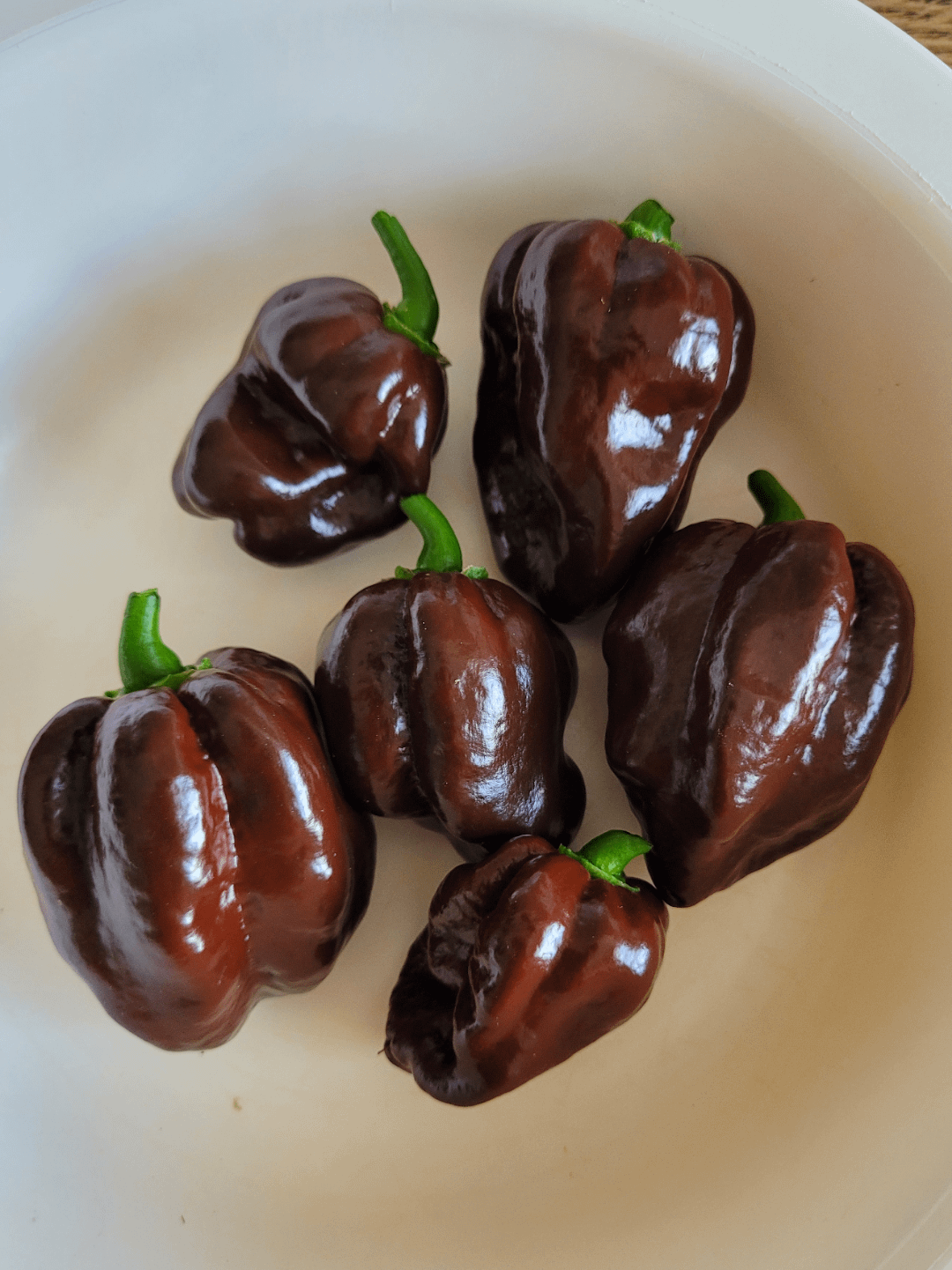 My first ever harvest. Chocolate Scotch Bonnets. by blueweb Hot peppersPeppersSpicy Stuffsweet peppersWrite A CommentYou must be logged in to post a comment.