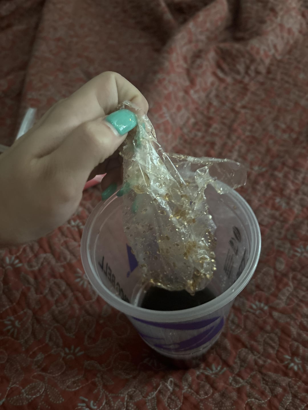 There was a whole BAG in my drink… that’s so vile