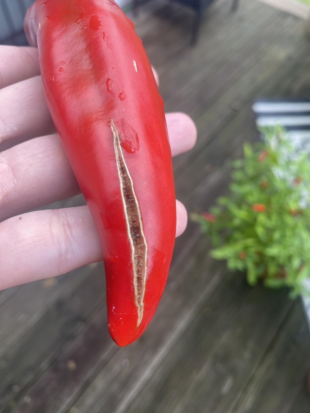 It’s happen to quite a few of my peppers this year along with blossom end rot. I’ve never had this happen in any of my years of growing peppers. Also would people still dry and use this pepper?