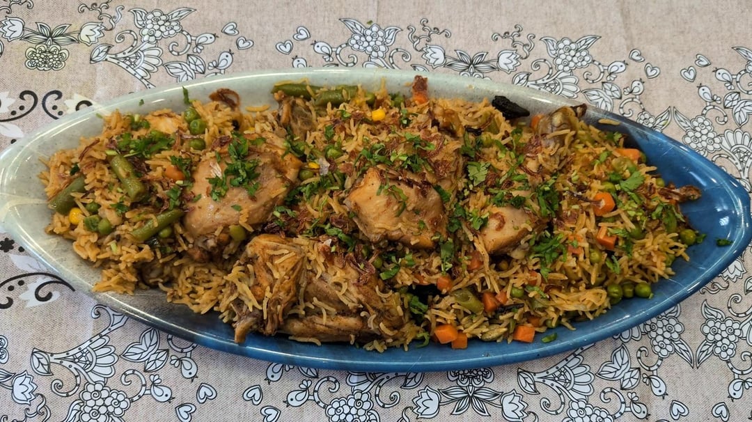 Spiced Chicken, mixed Vegetables and fluffy basmati rice all made in one-pot.