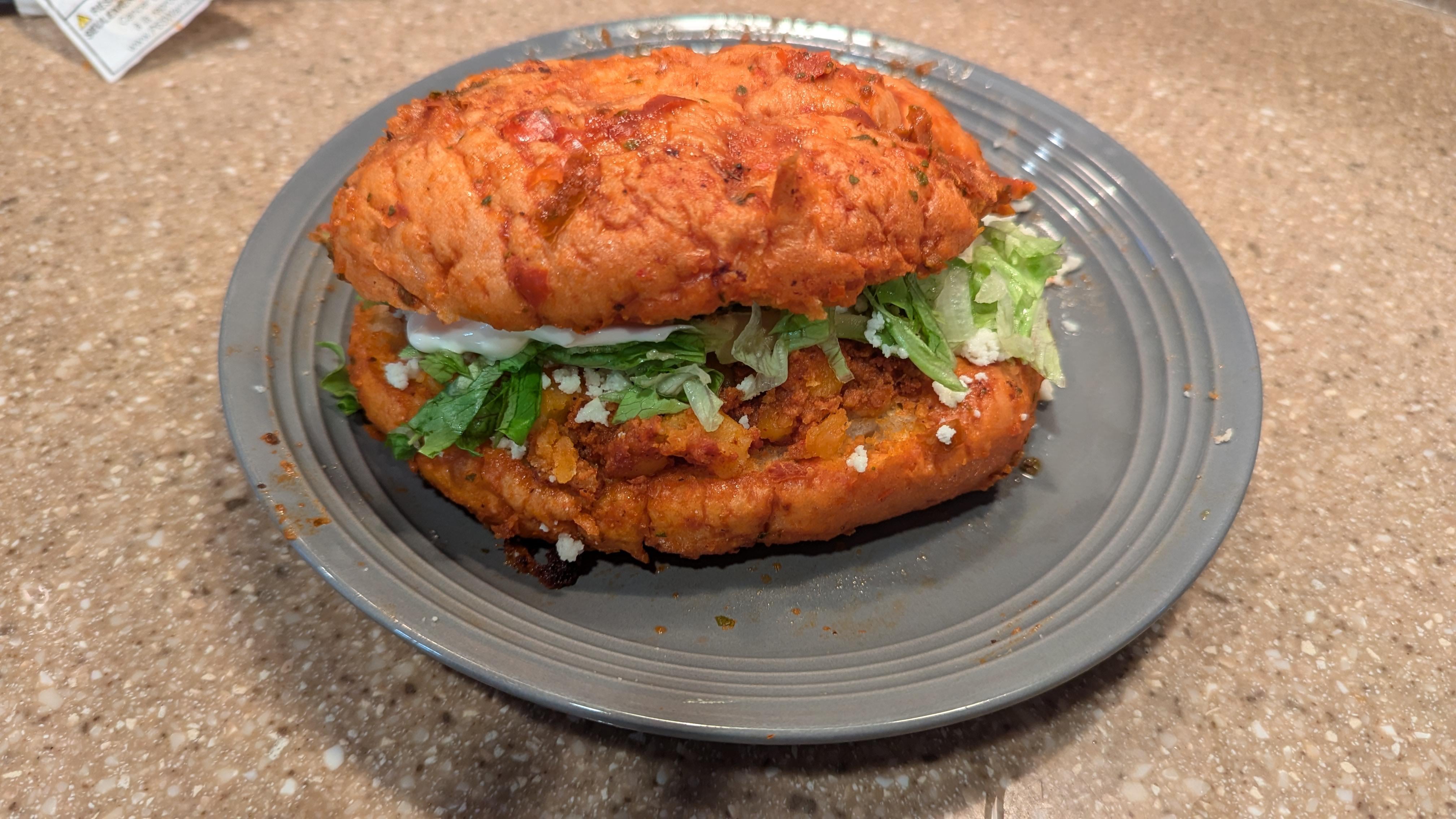 Potatoes and chorizo on a telera roll dipped in guajillo sauce with crema, beans, lechuga, aguacate and queso fresco…Common on Mexican food trucks around here in Chicago and the suburbs.by jaybee423 Write A CommentYou must be logged in to post a comment.