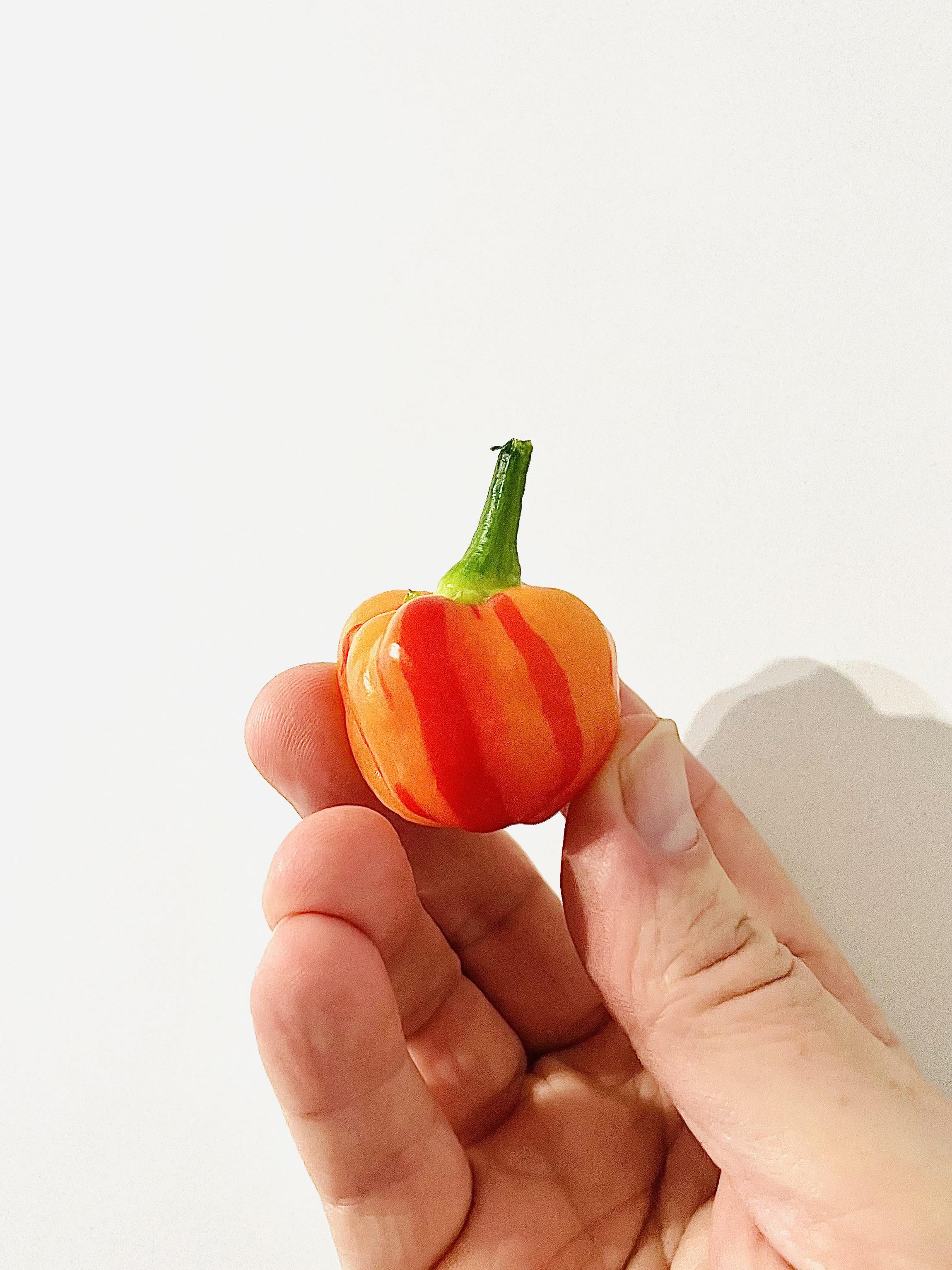 My first ever Peppapeach Stripey, grown indoors in the Scottish Borders. Seeds from Chris Fowler at Welsh Dragon Chilli.