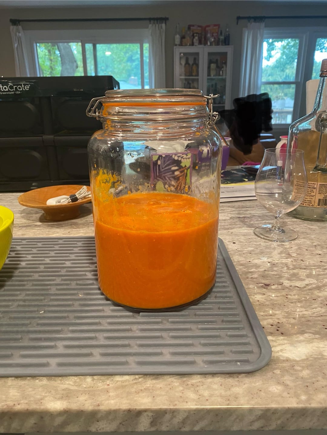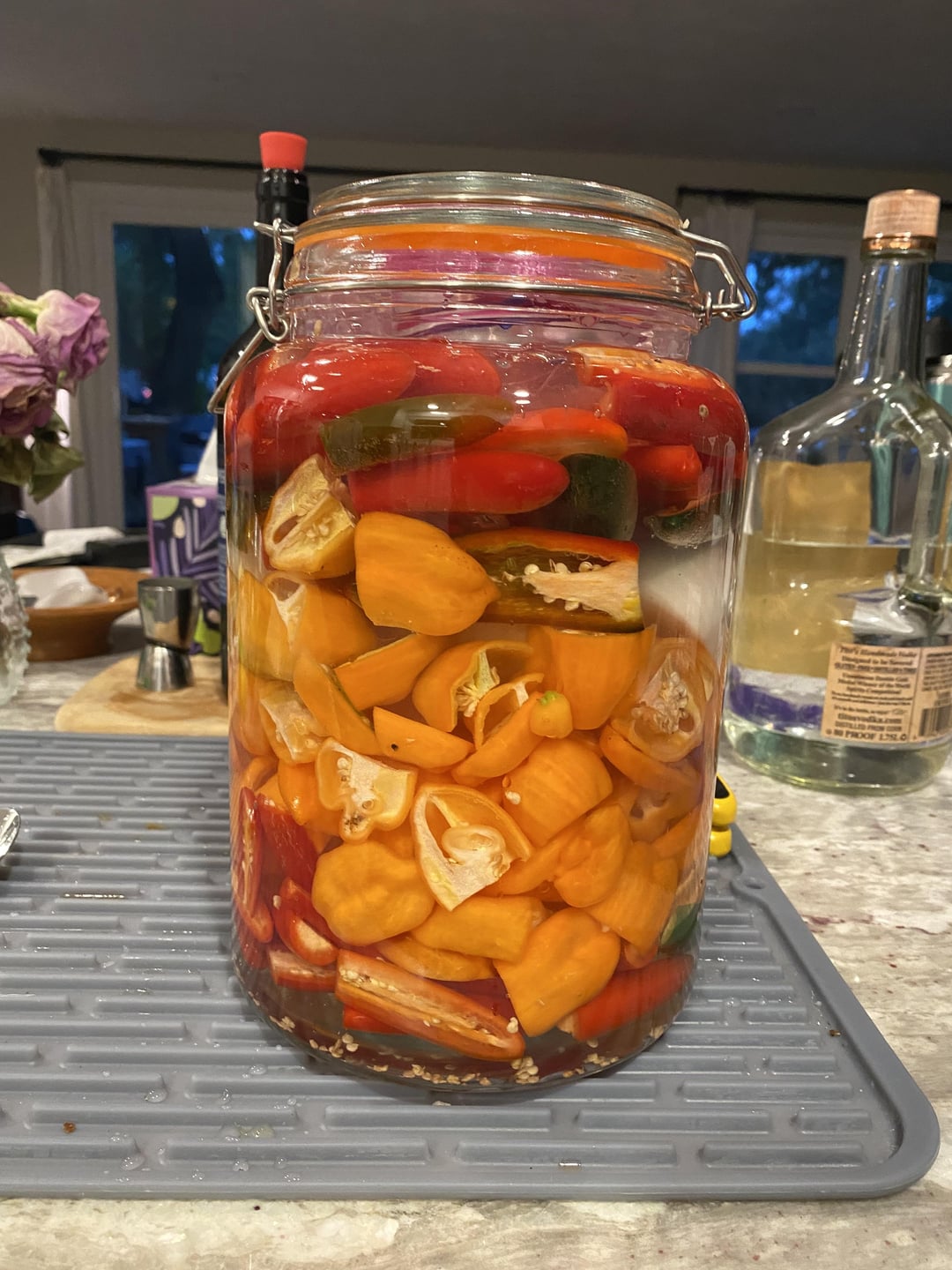 My latest batch, nothing fancy, just habanero, serrano, jalapeño, garlic and onion. Fermented for 10(ish) days, then blended with a bit of apple cider vinegar and some of the brine.