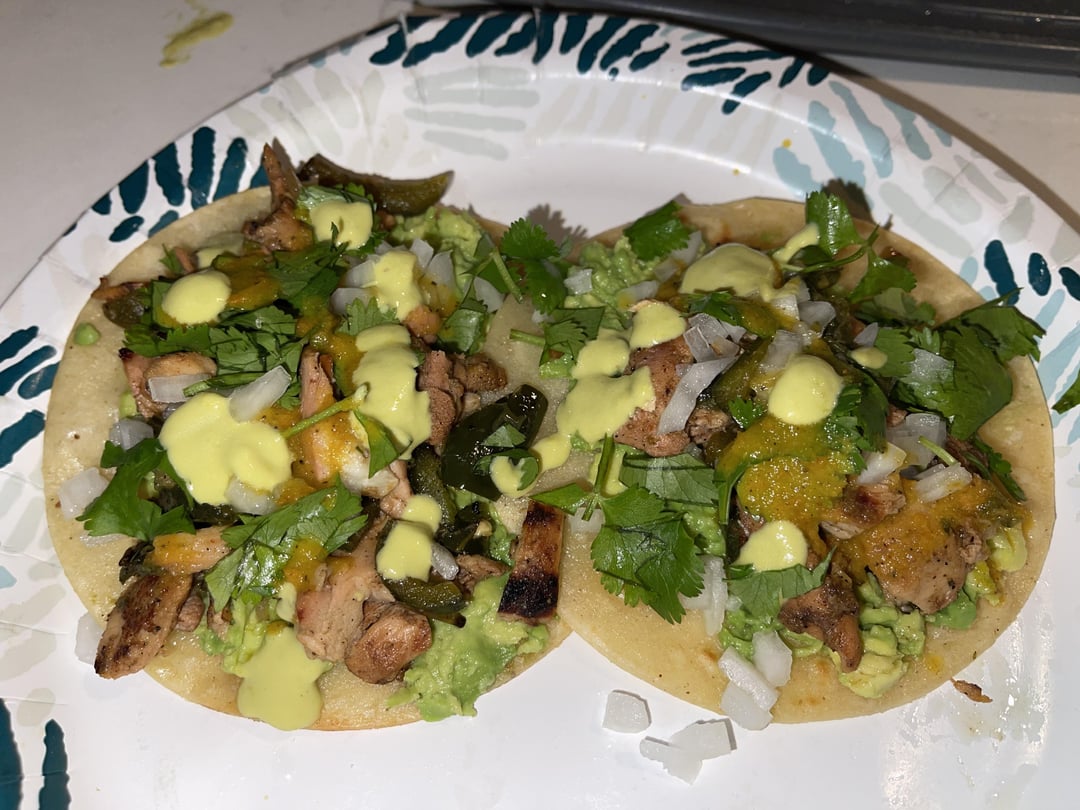 Marinated chicken thighs with grilled poblano, jalapeno and onion. Also has raw onion, cilantro, 2 salsas, avocado and lime. One of my favorite types of tacos to make. by Honkey_Fellatio Write A CommentYou must be logged in to post a comment.