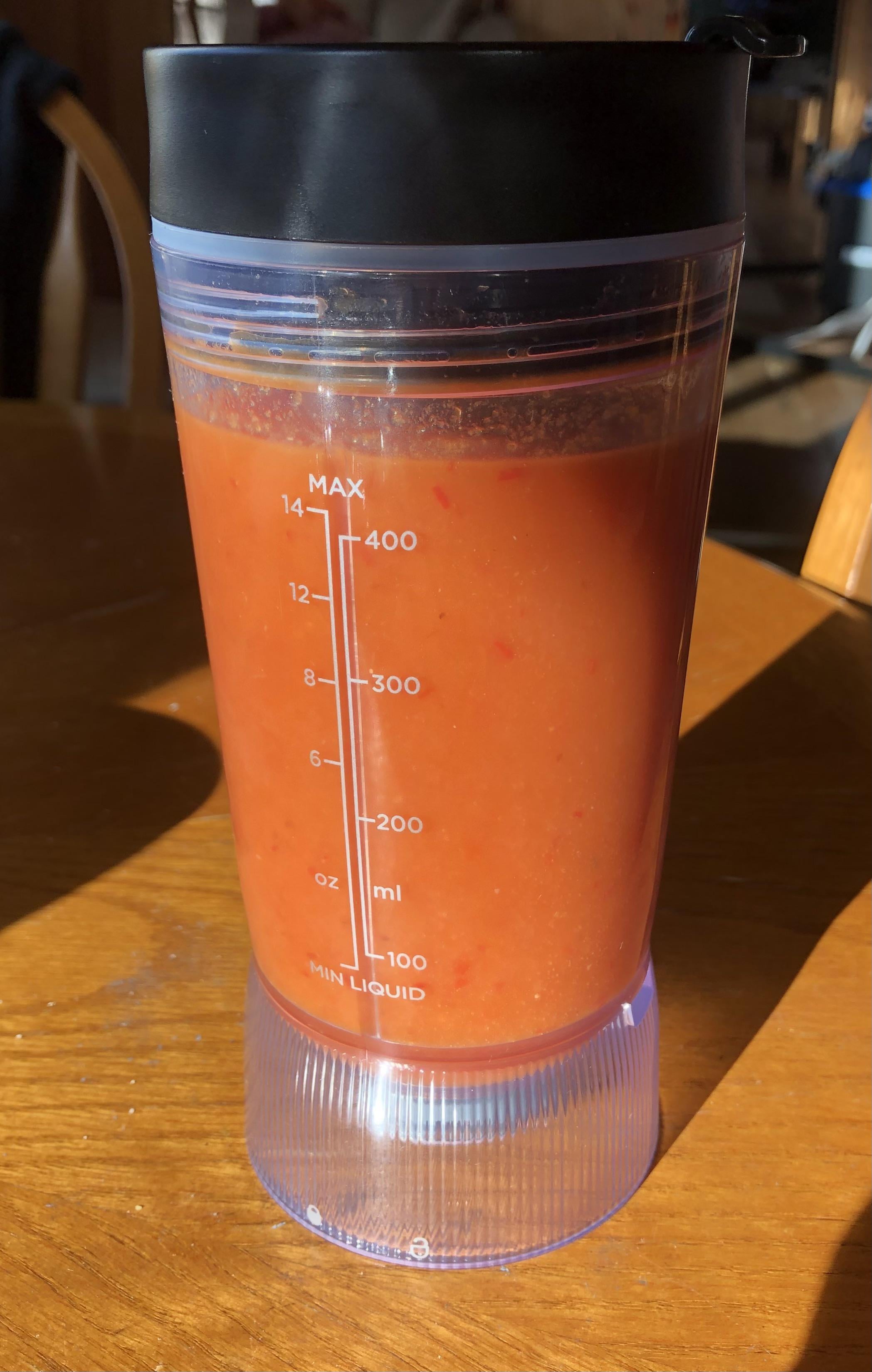 I blended up 4 habaneros, 5 scorpions, and 6 cloves of garlic in a bit too much vinegar (whoops), and after adding a bit of salt and a pinch of ground flaxseed for thickening, it turned out perfect in flavour and consistency, but was way too hot to use as-is. I mixed it with basically the whole bottle of Melinda’s and it mellowed it out to the point where it’s enjoyable.