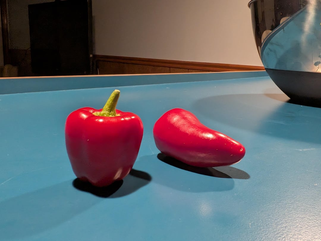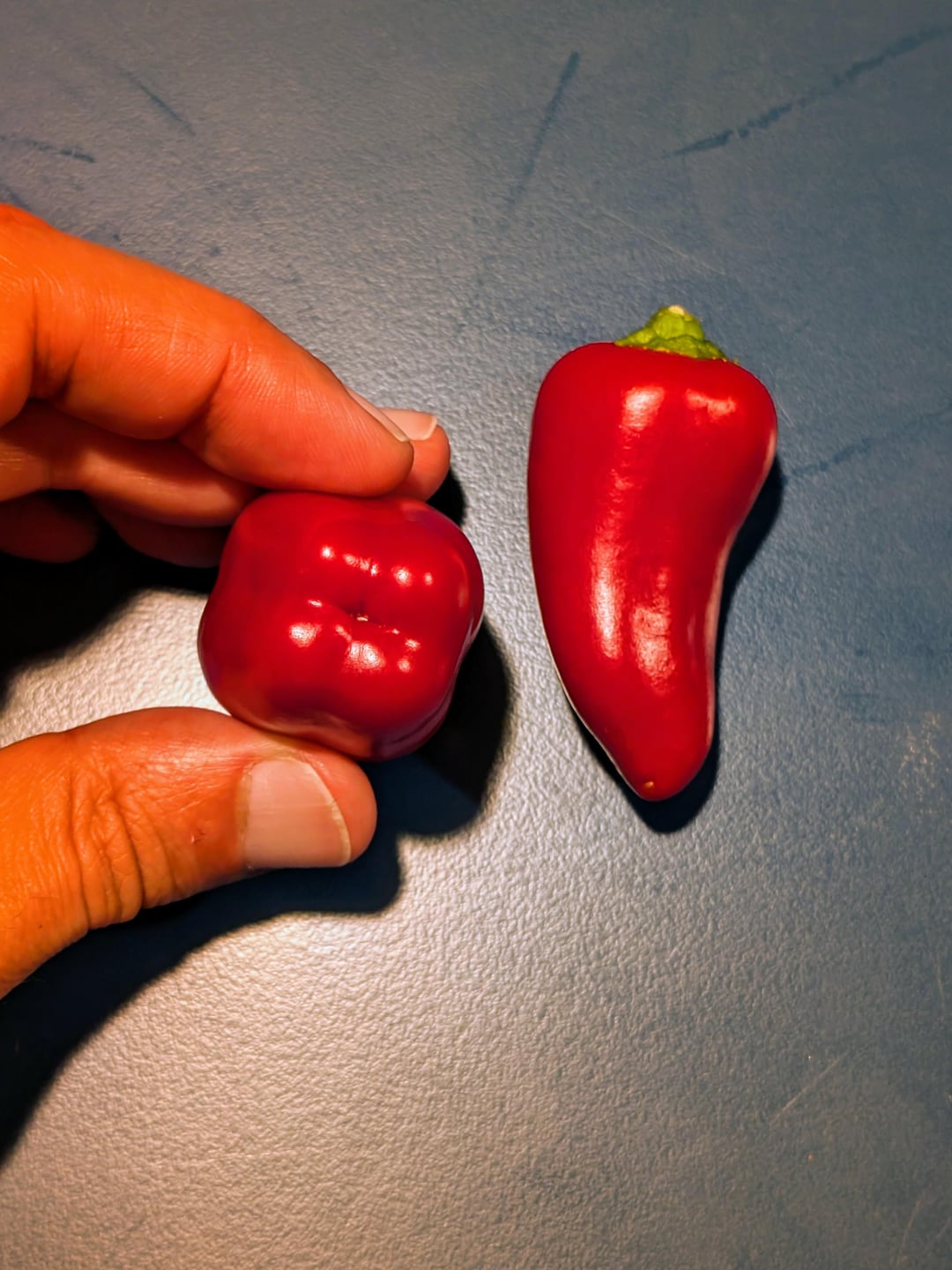 These are both Fresno peppers off the same plant…but one grew like a bell! Just funny little pepper things.