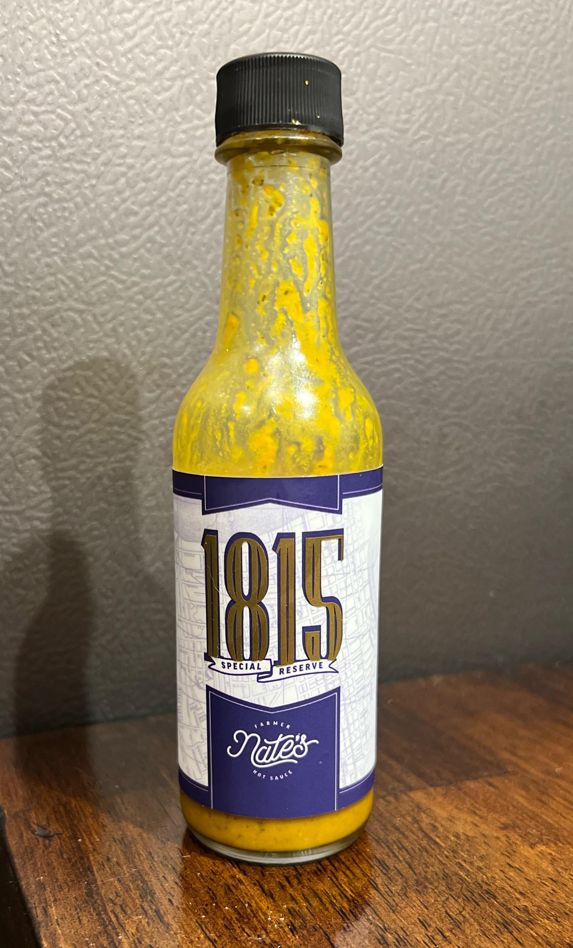 Farmer Nate’s 1815, local in Northern KY and chickpea based. Pretty mild spice overall but pairs really well with Mediterranean and other softer flavors in my opinion. Recommend buying this sauce if it’s available, or anything else Farmer Nate makes if you’re in the area. Support your local hot sauce makers!