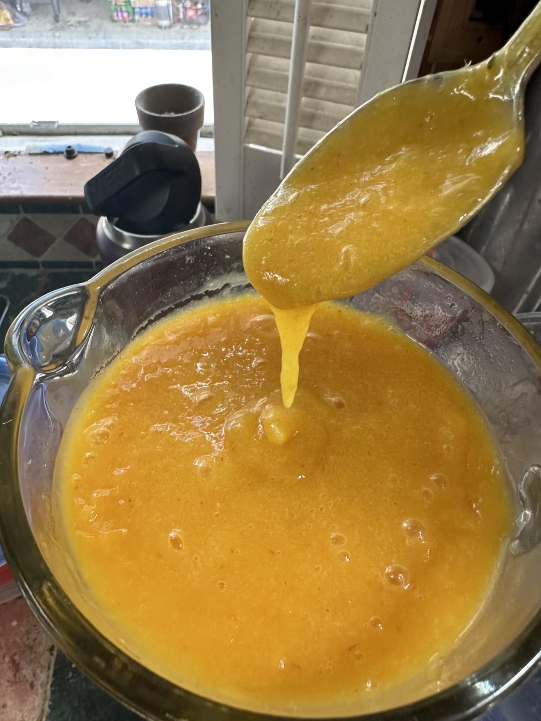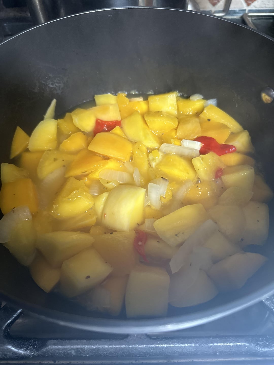 Made myself a mango, peach and thyme, and smoked Garlic hot sauce.