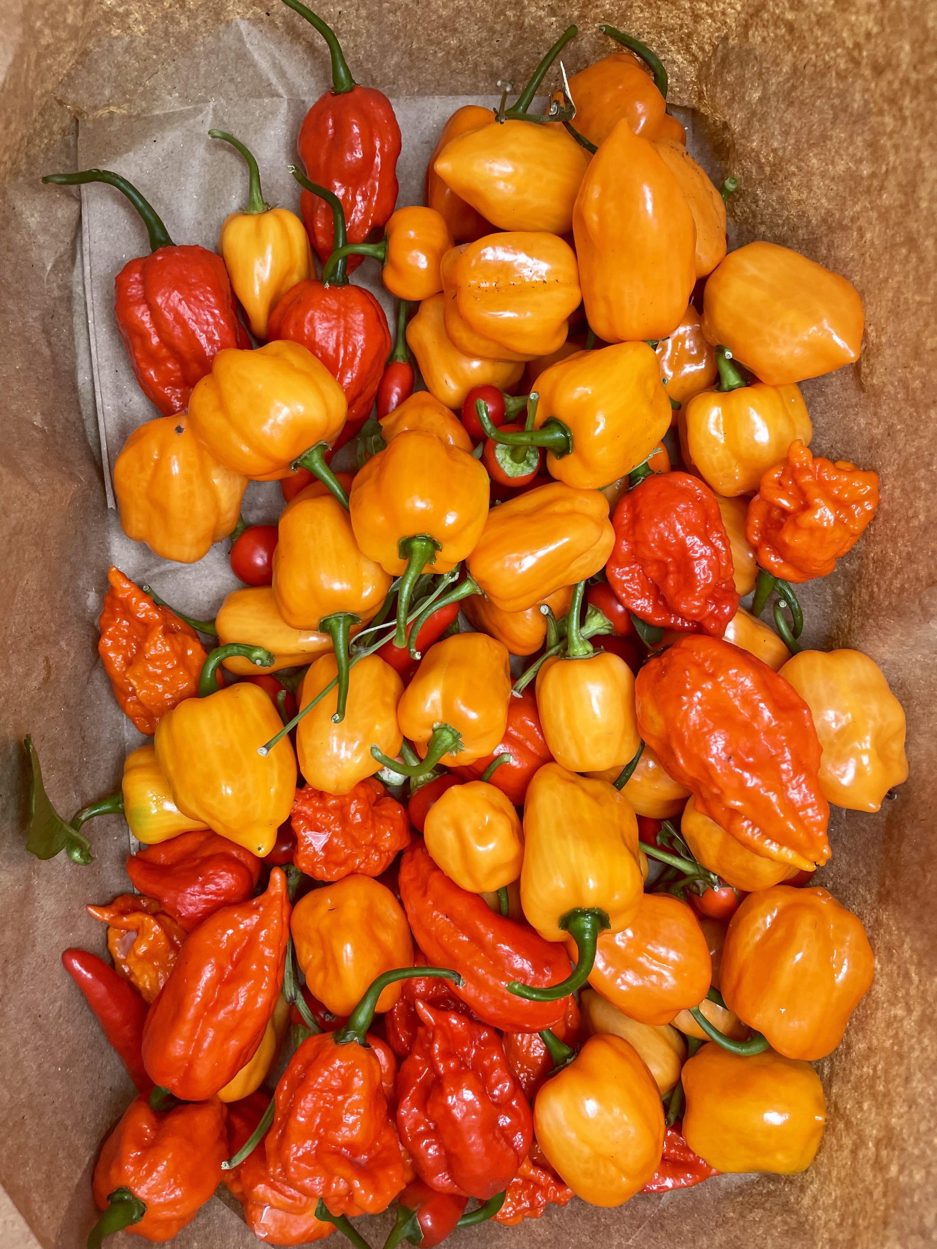 Third harvest of my peppers from this year (first timer). Pretty impressed with the quantity and quality so far, mainly been growing Habanero, Ghosts and Caroline Reapers with some Thai chilis and Tabasco for good measure.