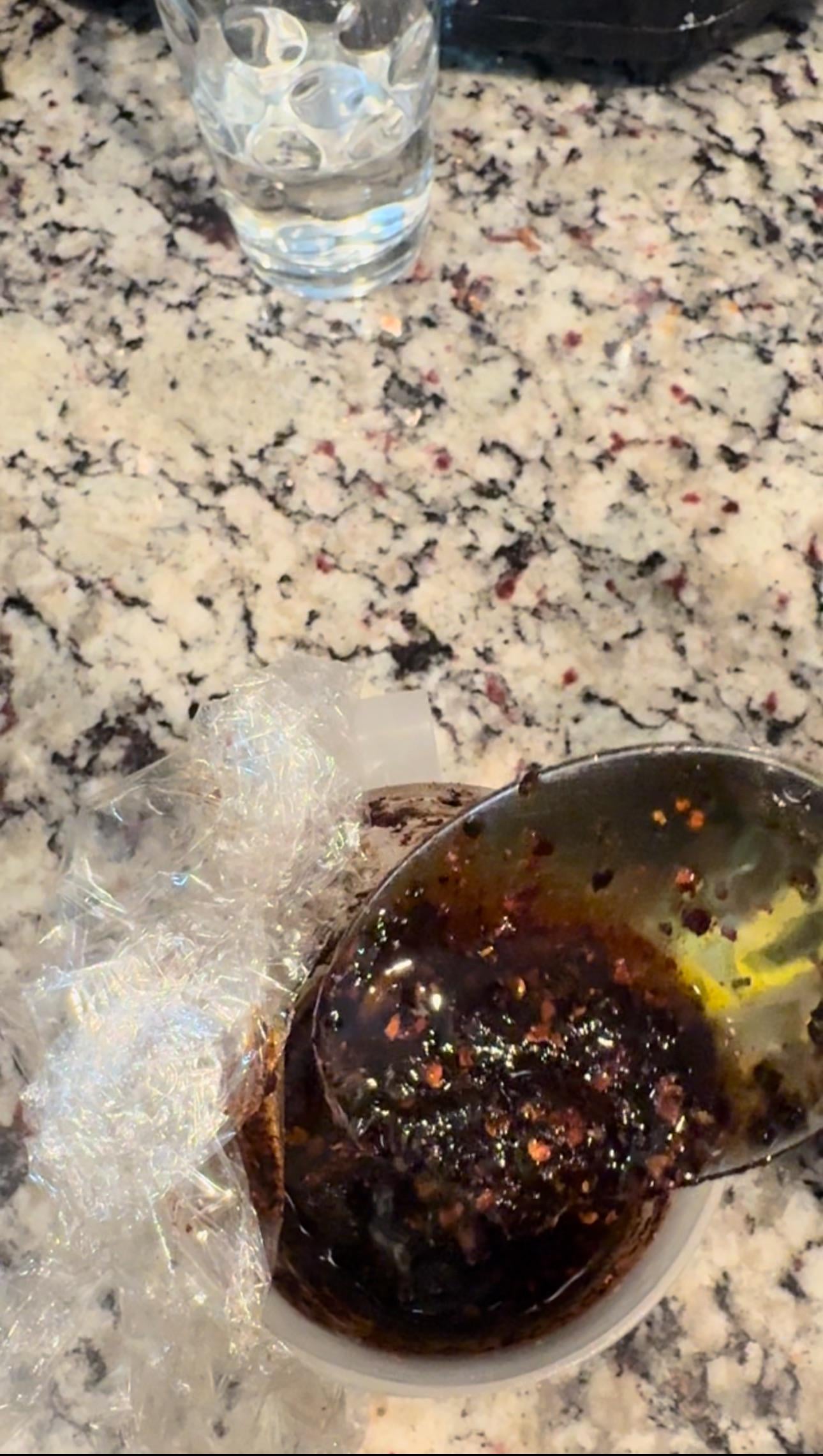 At this point, you can either add new olive oil or use the one you cooked into the bowl ( i reused mine) if you reused the oil, let it sit for a bit before adding it to the blender so it doesn’t melt the plastic or the rubber seal. If you have a metal container…you suck!