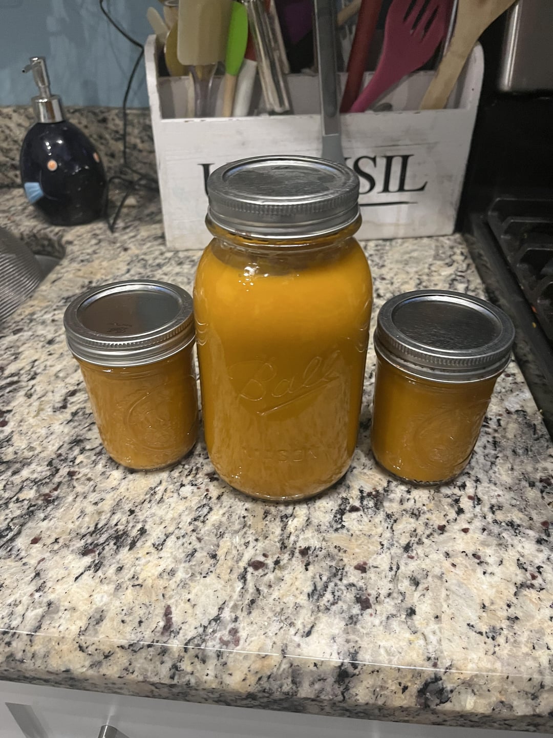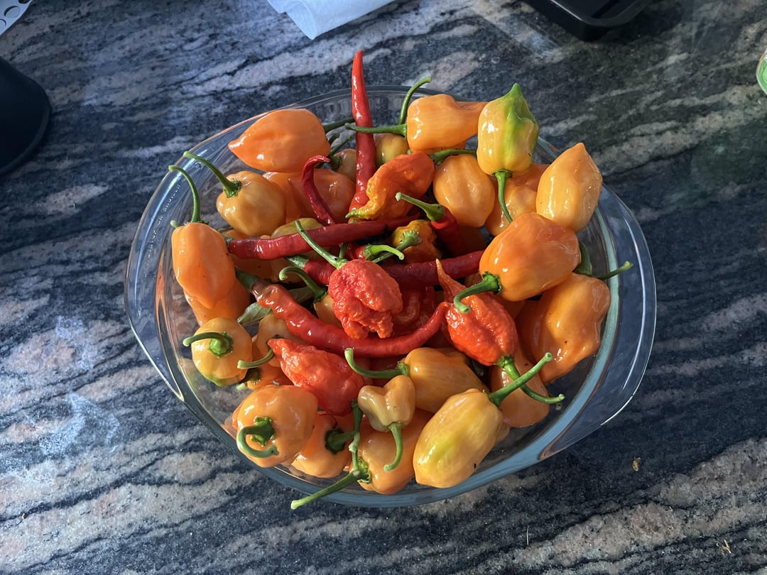 Super hot sauce with really great flavor. Carmelized sweet onion, garlic, carrots ,cantaloupe, pineapple,tomatoes and limes. Simmered for two hours in bud light and white captain Morgan’s till almost all liquid was gone. I used Carolina reapers, cayenne, jalapeño, and habanero peppers. White whine vinegar, red wine vinegar, apple cider vinegar and rice wine vinegar. I used a digital PH tester and brought my PH below 3 to ensure that it’s super fridge stable for a long time. Something I highly recommend investing in. It’s so hot and I’ve just been eating it by the tablespoon